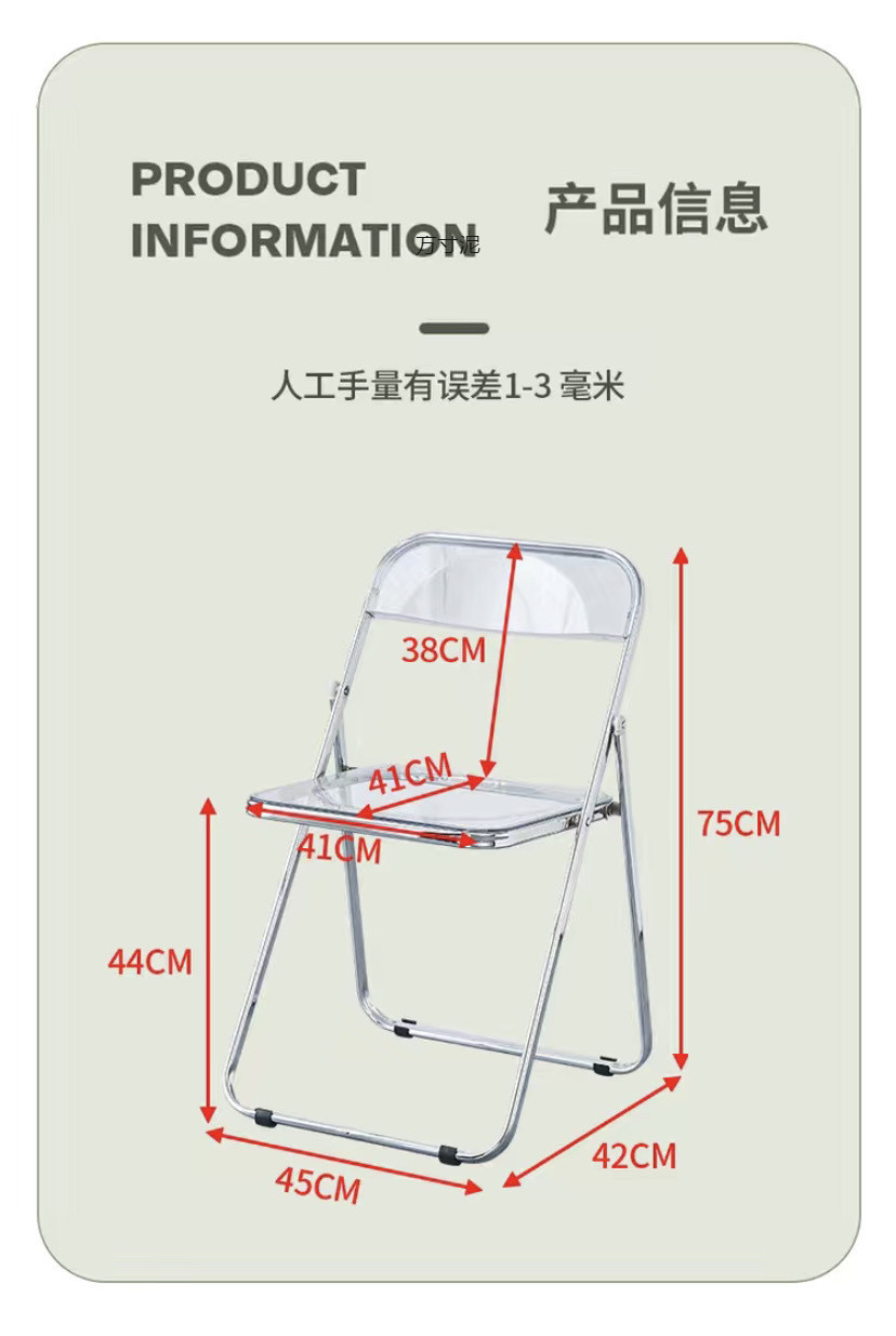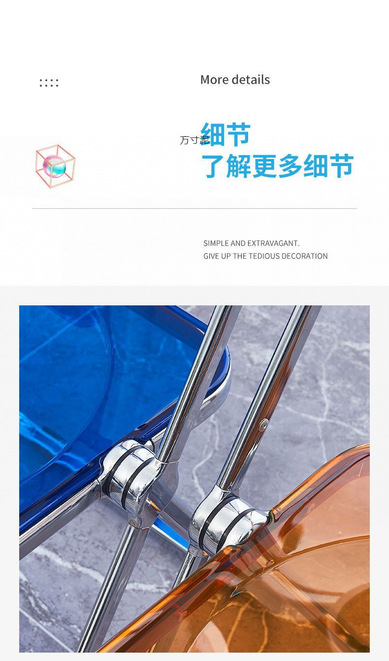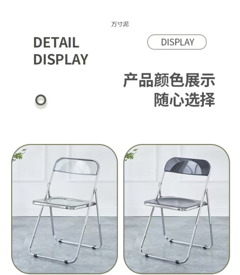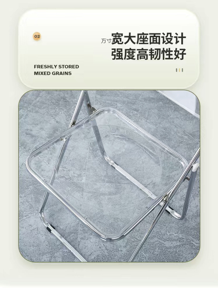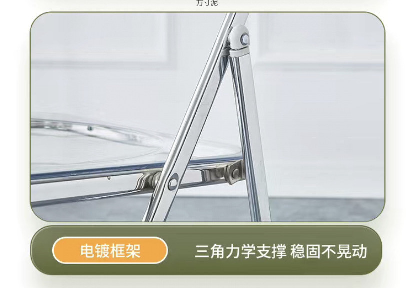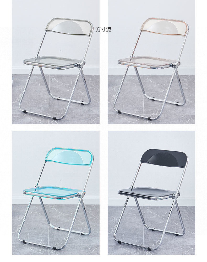 접이식 의자 스타일 아크릴 심플 라이트 럭셔리 패션 전기 도금 의자 스타일 아크릴 접이식 의자 투명 사진