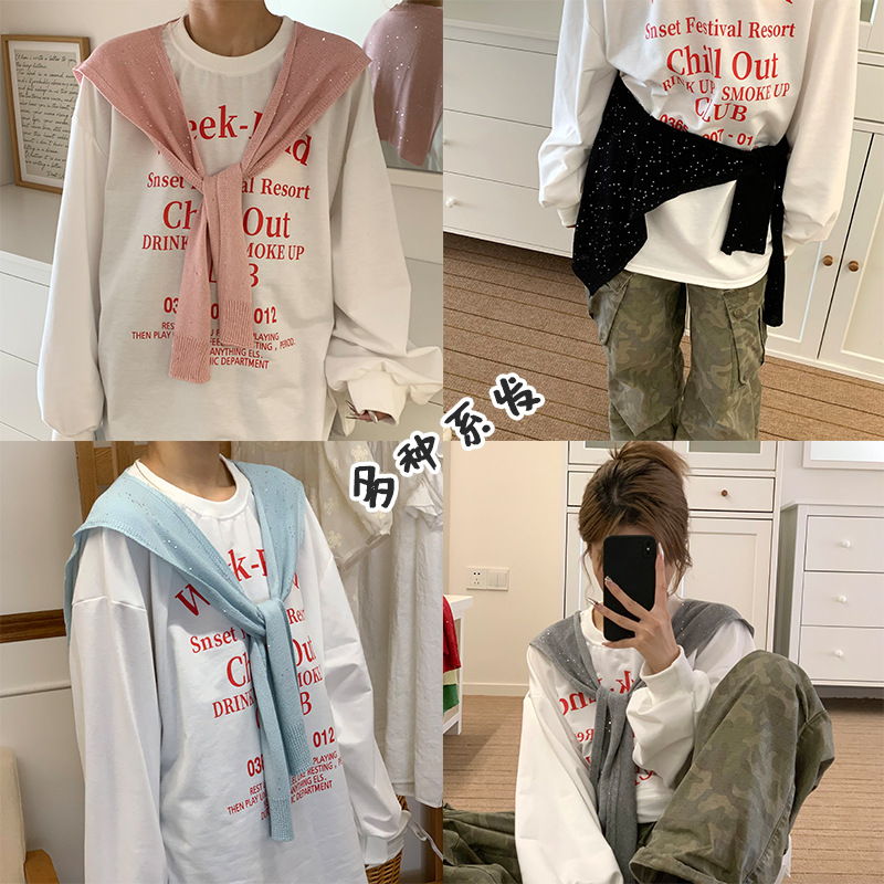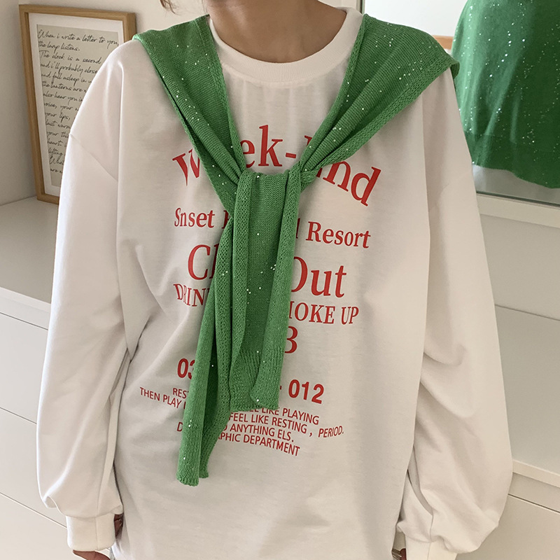 숄 니트 하이엔드 봄, 가을 한국식 넥 가드 여성용 조끼, 스팽글 스카프, 울 가짜 칼라 및 어깨스토어 가기