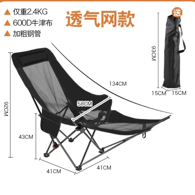 발 받침대가 있는 4단 메쉬 야외 달 의자, 안정적인 앉기, 높은 등받이, 캠핑 접이식 의자, 휴대용 해변 의자