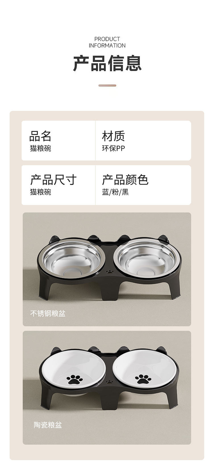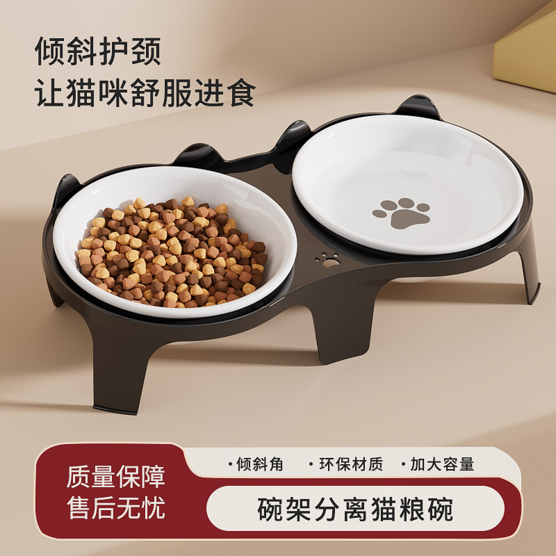고양이 그릇 세라믹 더블 그릇 물 그릇은 경추를 보호합니다. 높은 발 경사 입 고양이 먹이 그릇 식수 그릇 애완 동물 그릇 애완 동물 용품