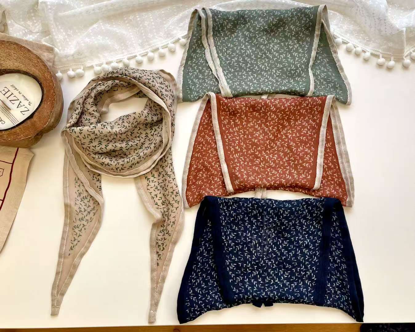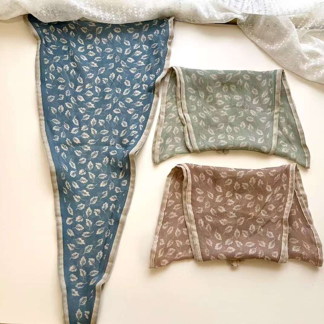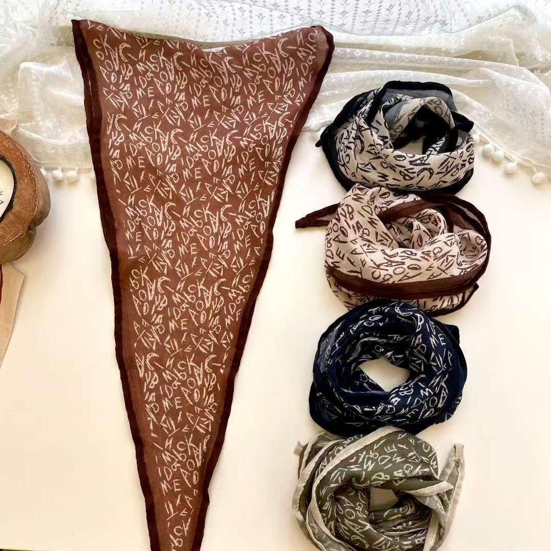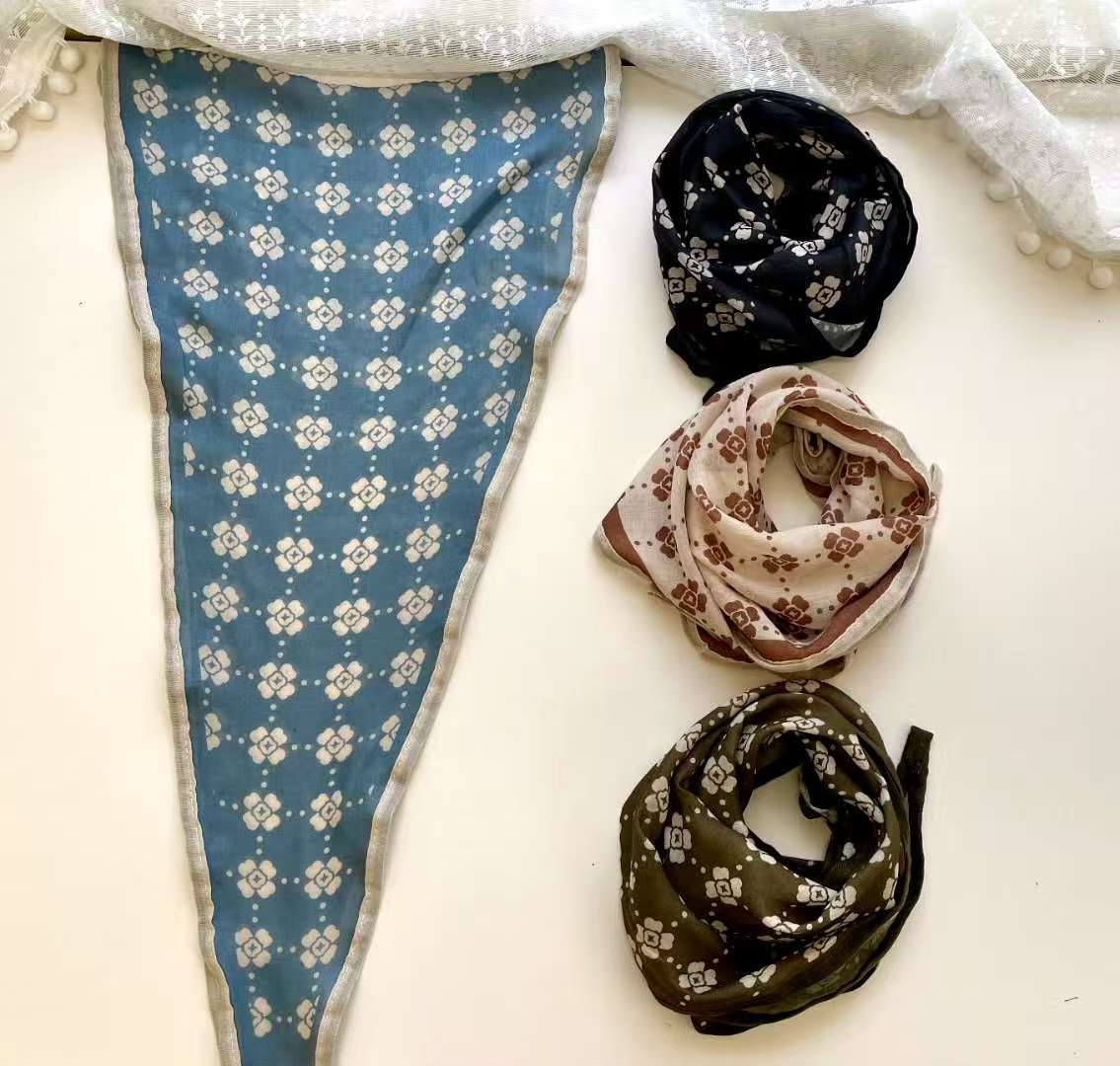 한국수출~면과 린넨 얇은 복고풍 패턴 마름모 실크 스카프 작은 긴 봄, 가을 여성용 다용도 스카프스토어 가기