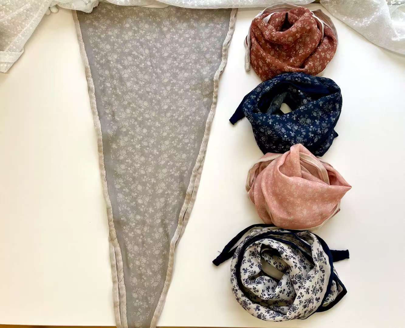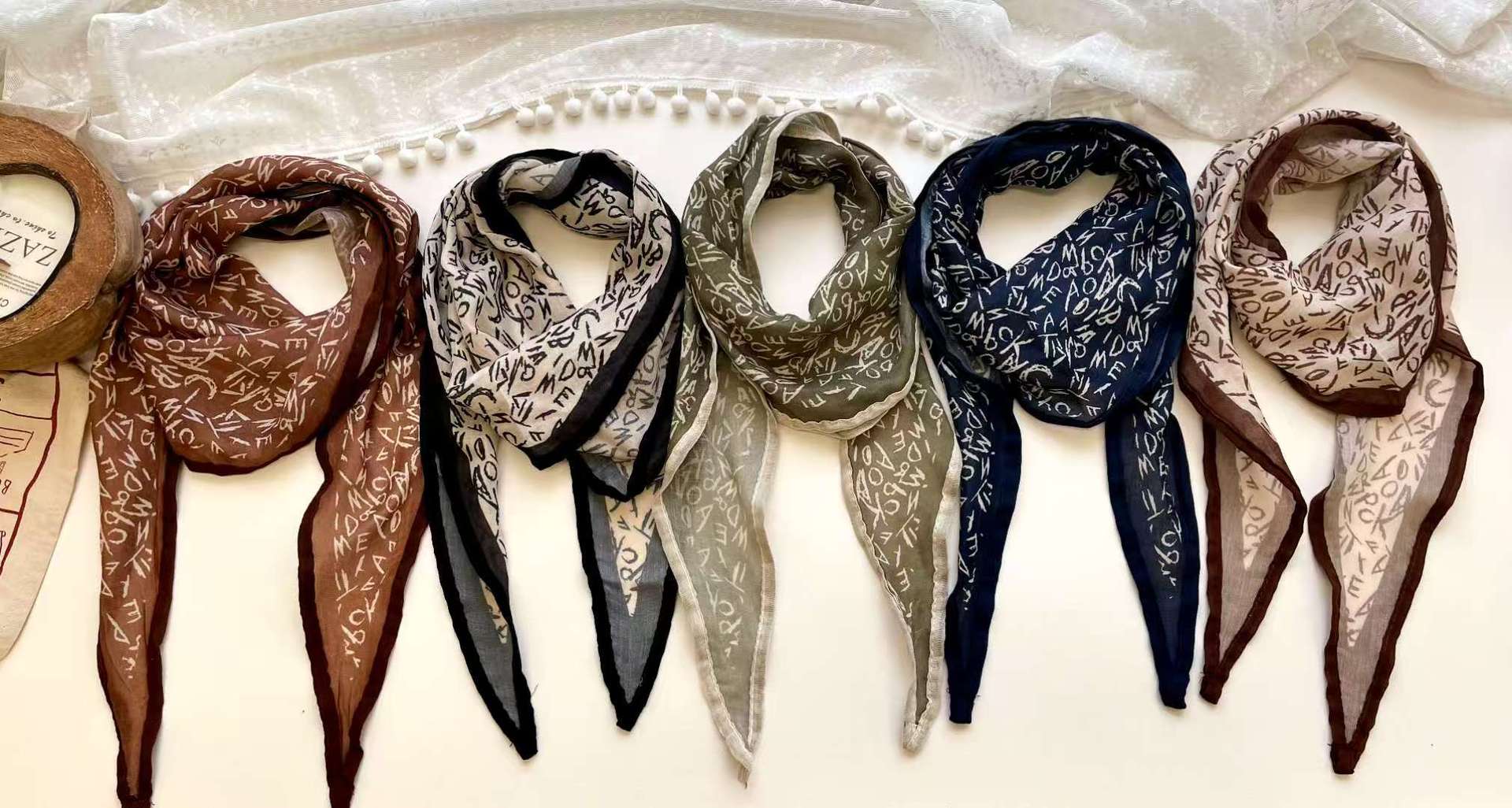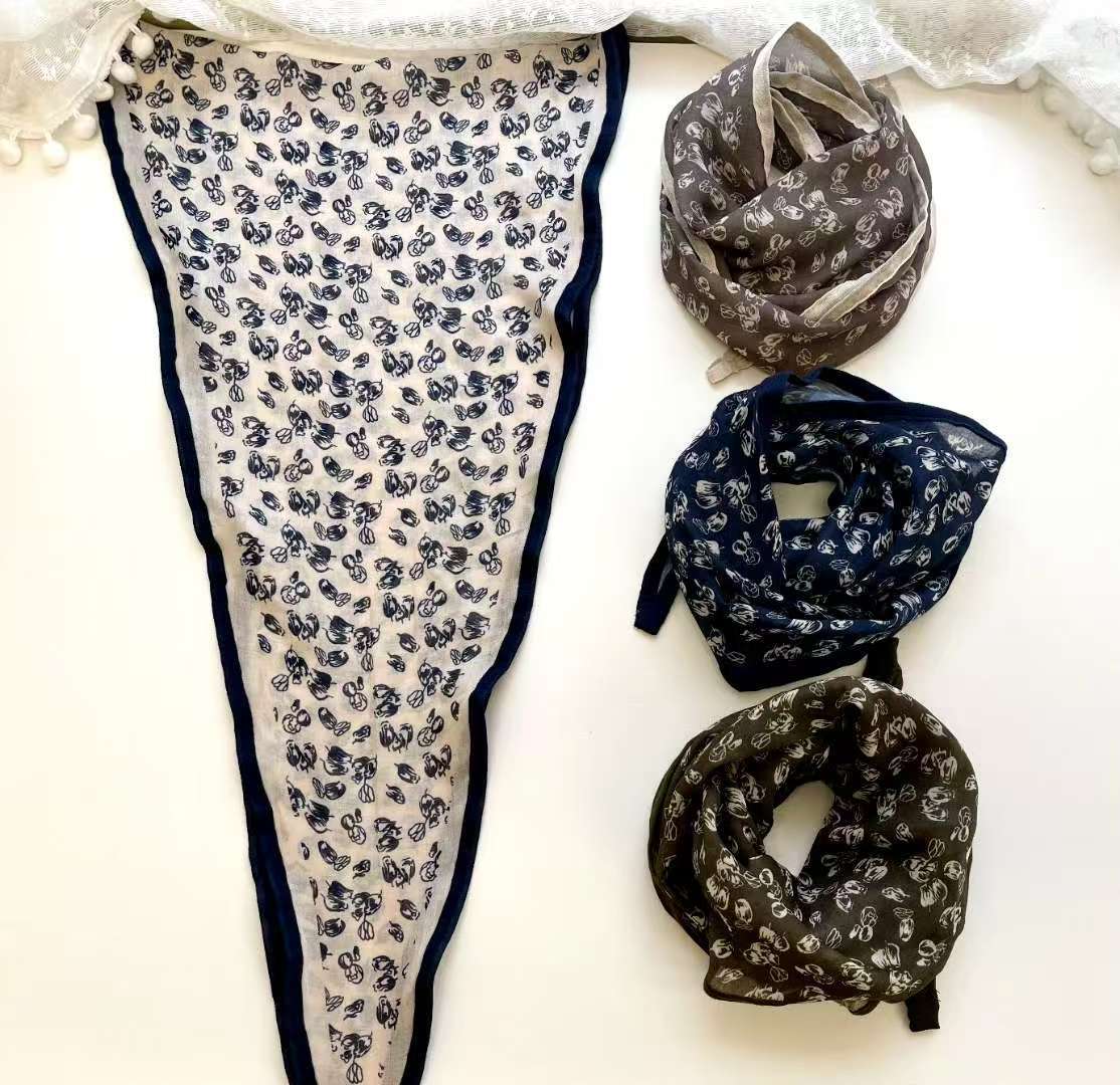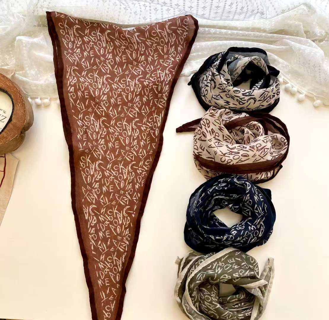 한국수출~면과 린넨 얇은 복고풍 패턴 마름모 실크 스카프 작은 긴 봄, 가을 여성용 다용도 스카프스토어 가기