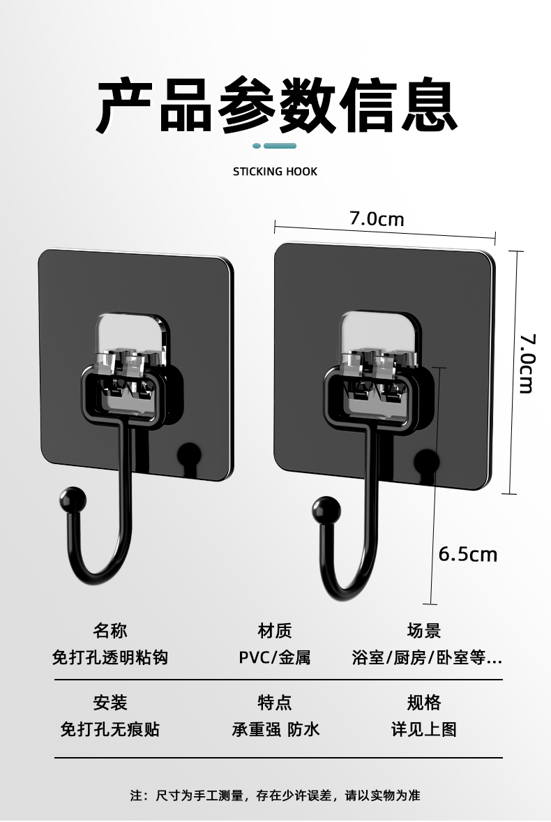 구멍이 없는 투명 후크, 강력한 접착 벽 후크, 가정용 흔적 없는 내하중 주방 접착 후크