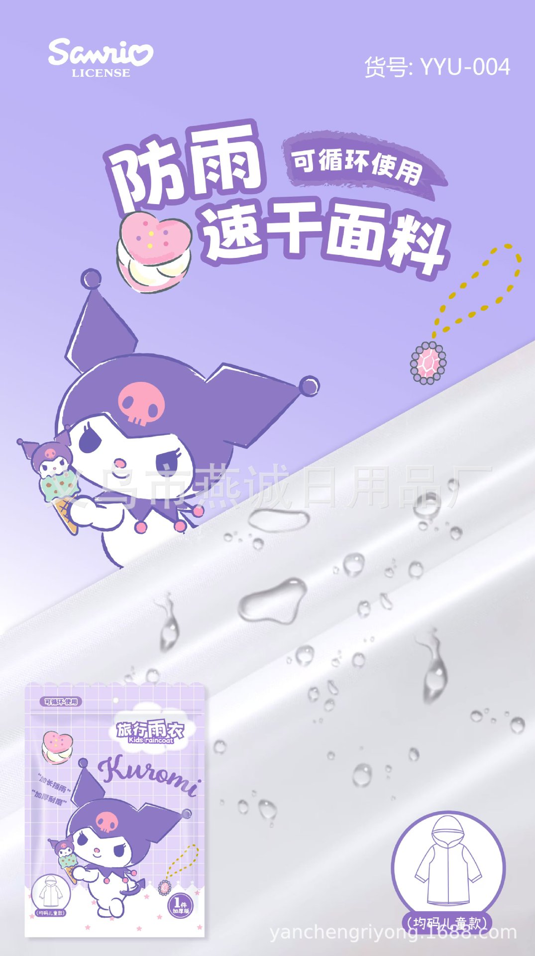 Sanrio 어린이 비옷 긴 방수 싱글 판초 일회용 EVA 소재 비옷 야외 휴대용스토어 가기