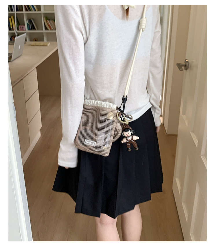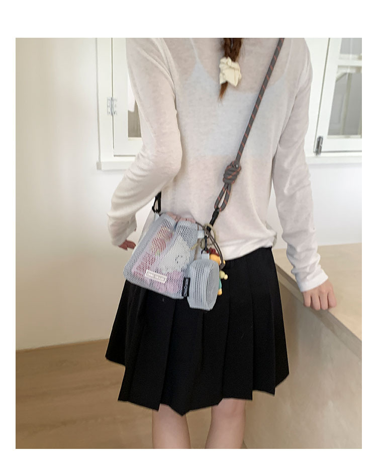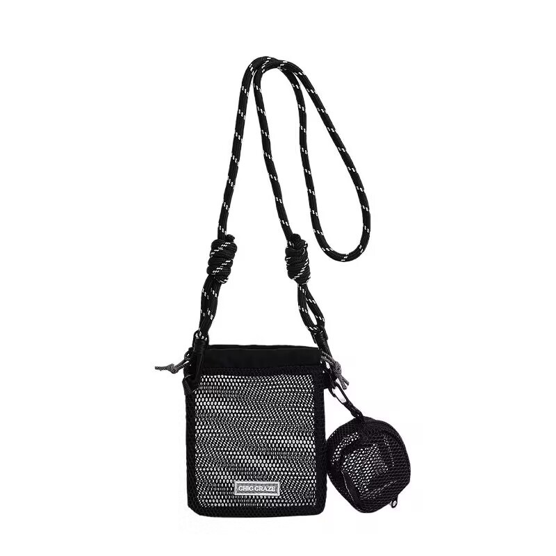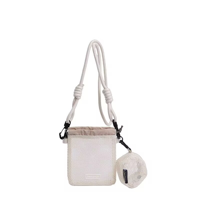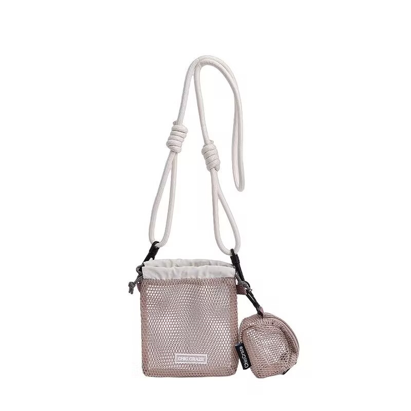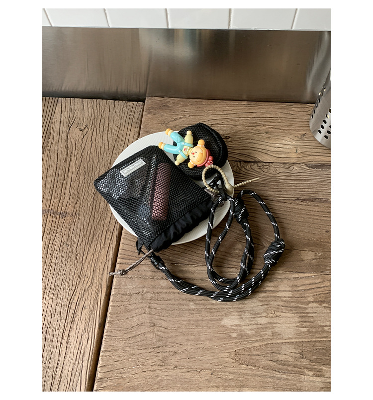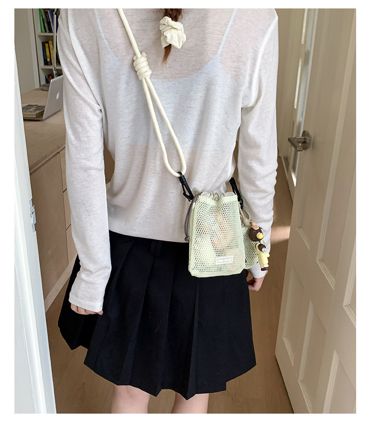 여성을위한 달콤한 작은 신선한 휴대 전화 가방 2025 여름 새로운 중공 어깨 가방 크로스 바디 메쉬 휴대용 버킷 가방