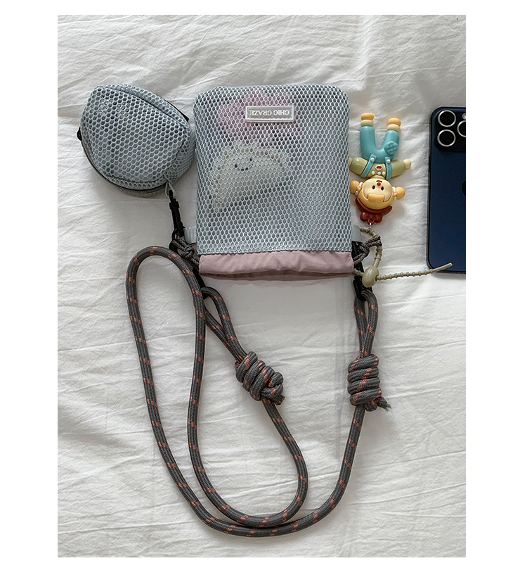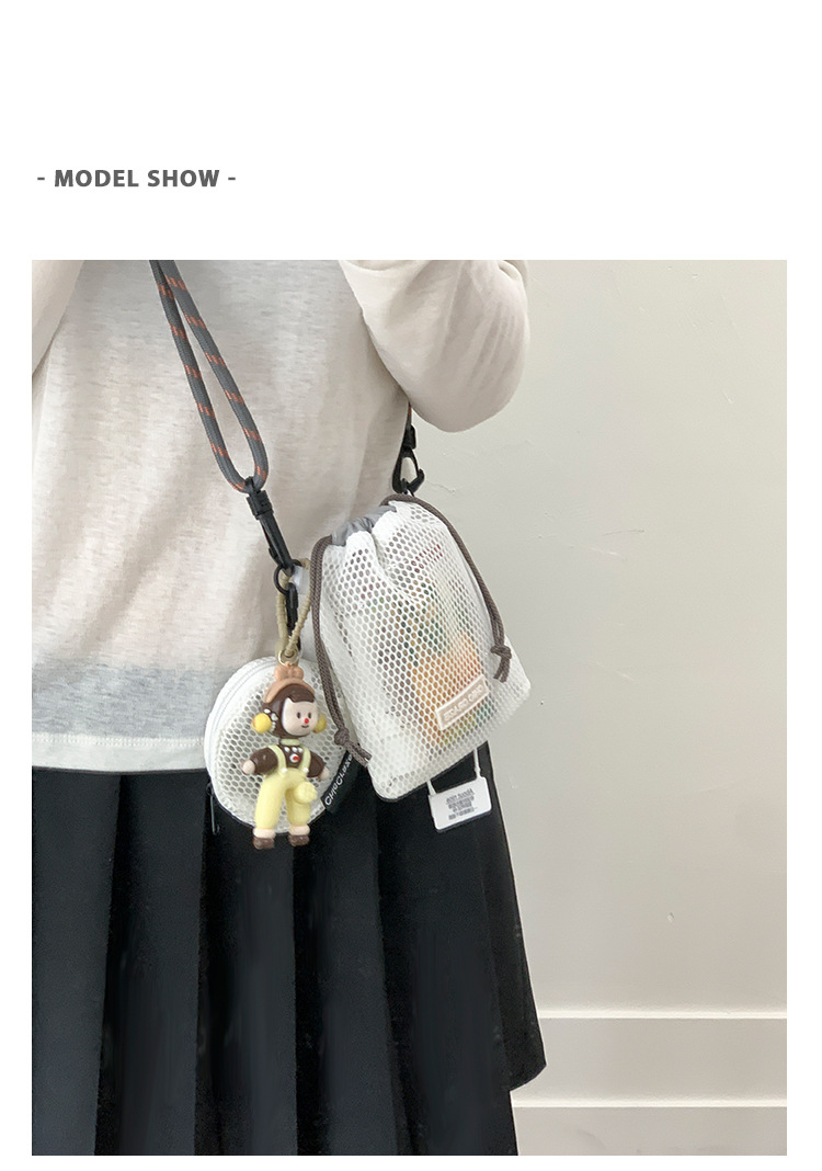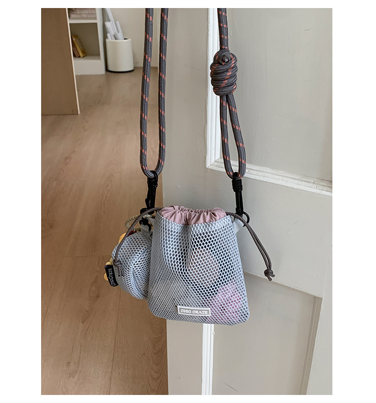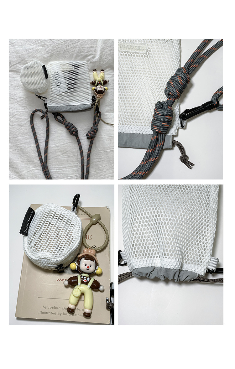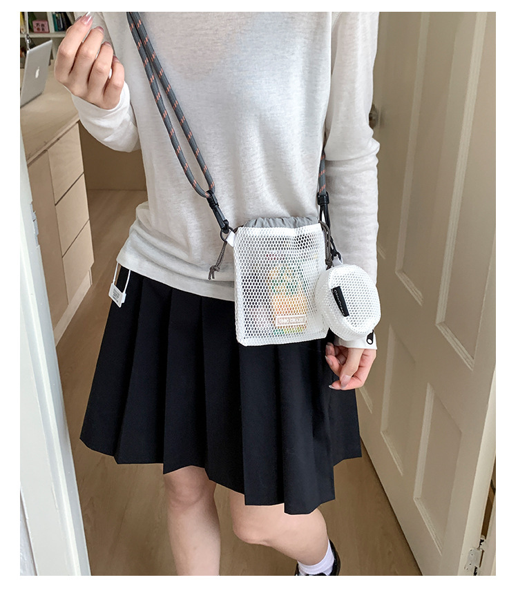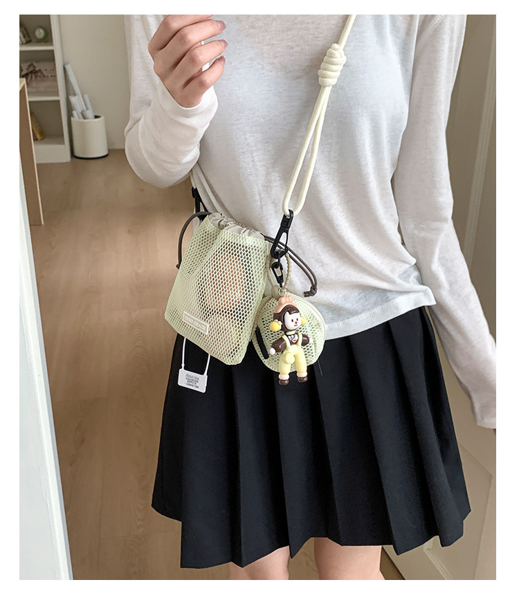 여성을위한 달콤한 작은 신선한 휴대 전화 가방 2025 여름 새로운 중공 어깨 가방 크로스 바디 메쉬 휴대용 버킷 가방