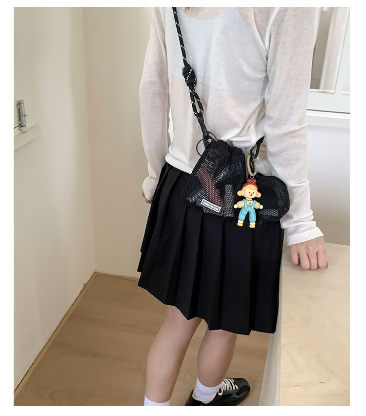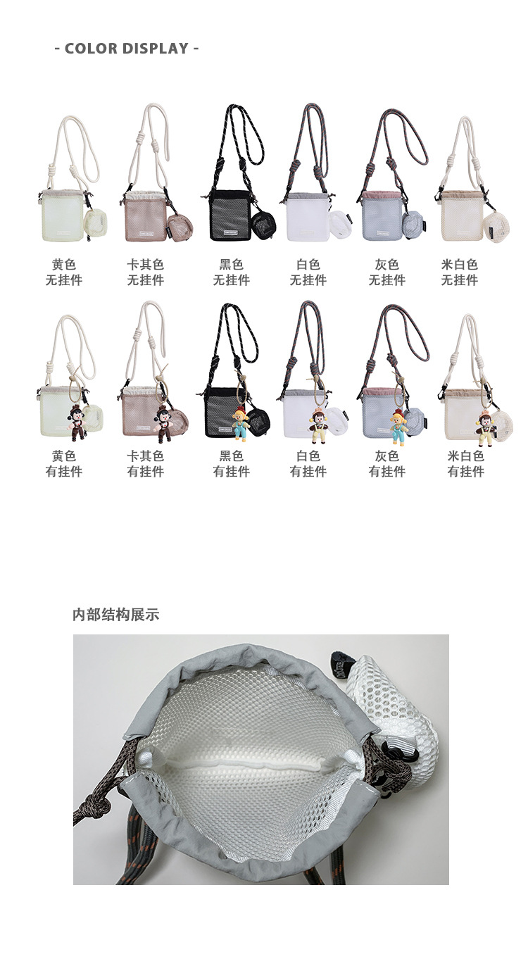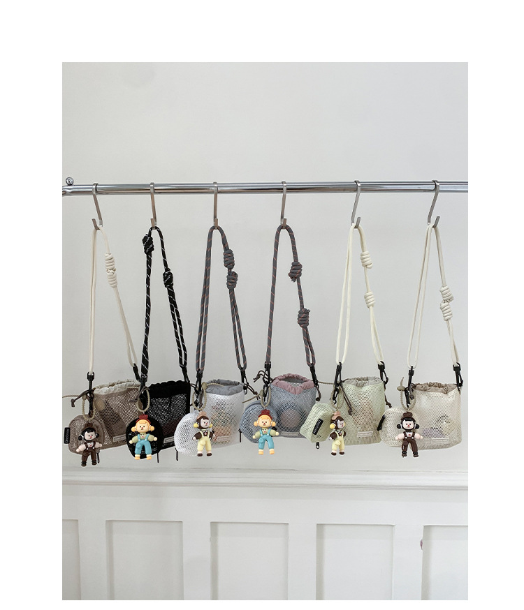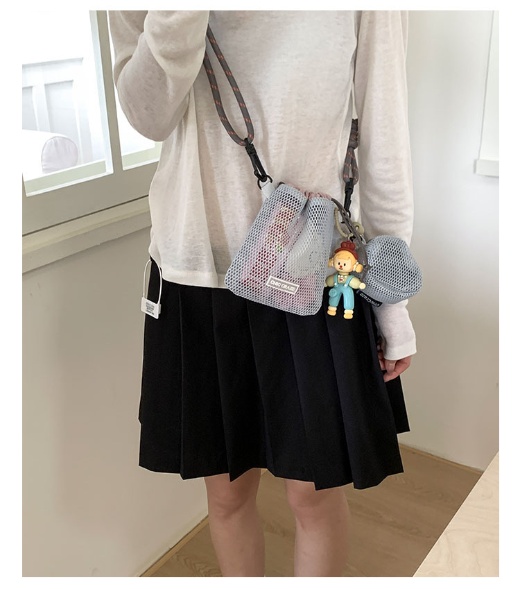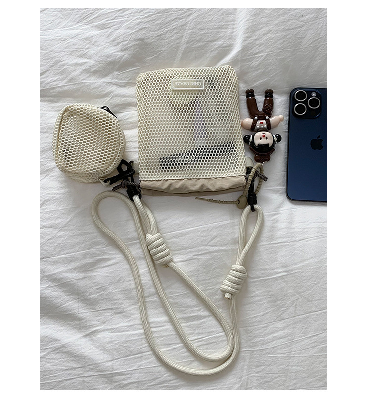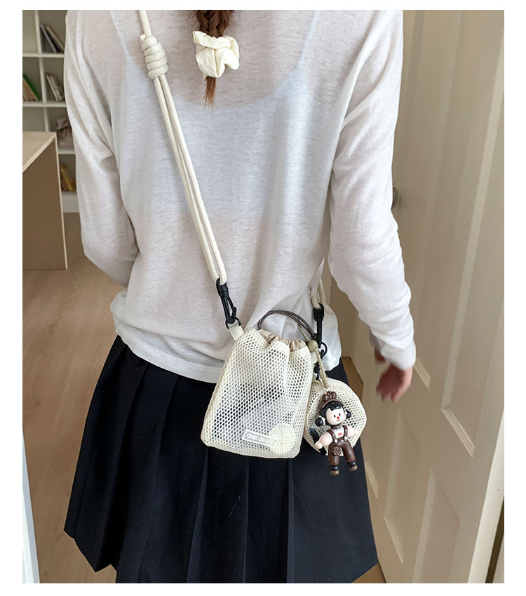 여성을위한 달콤한 작은 신선한 휴대 전화 가방 2025 여름 새로운 중공 어깨 가방 크로스 바디 메쉬 휴대용 버킷 가방