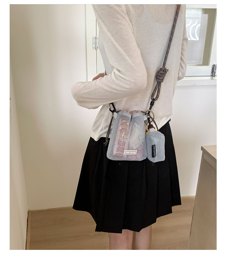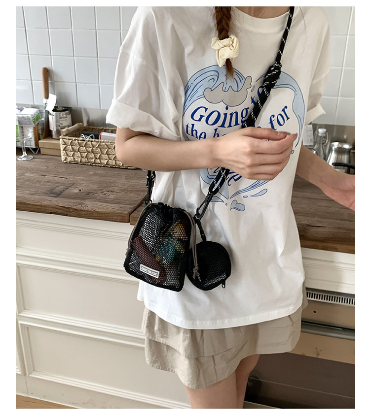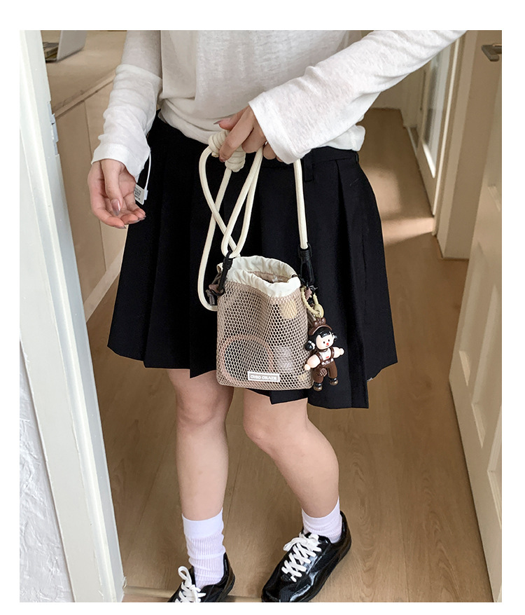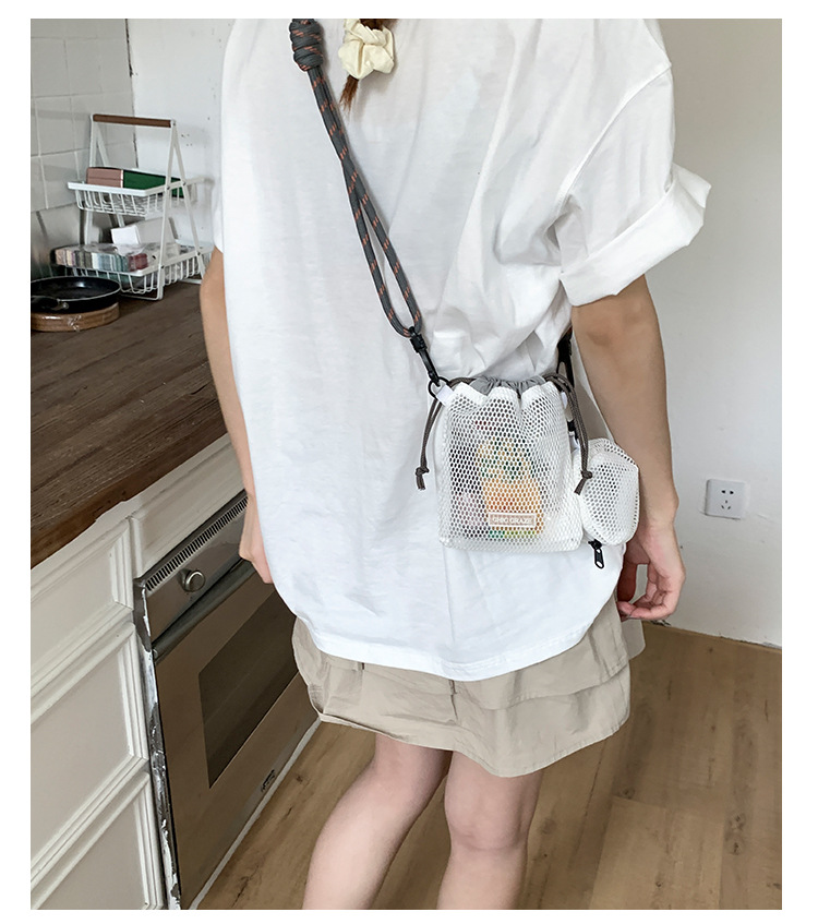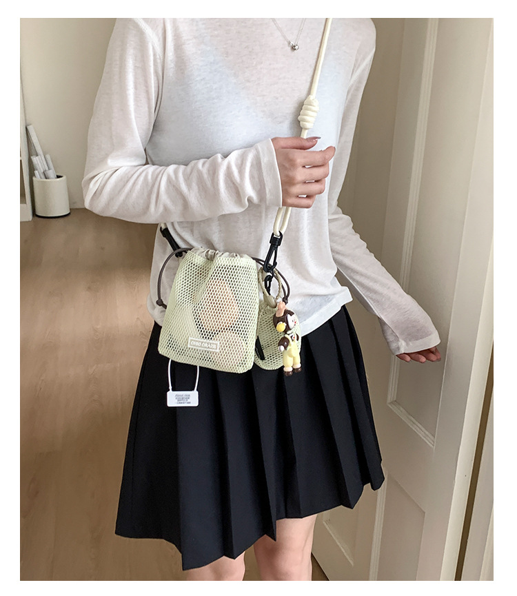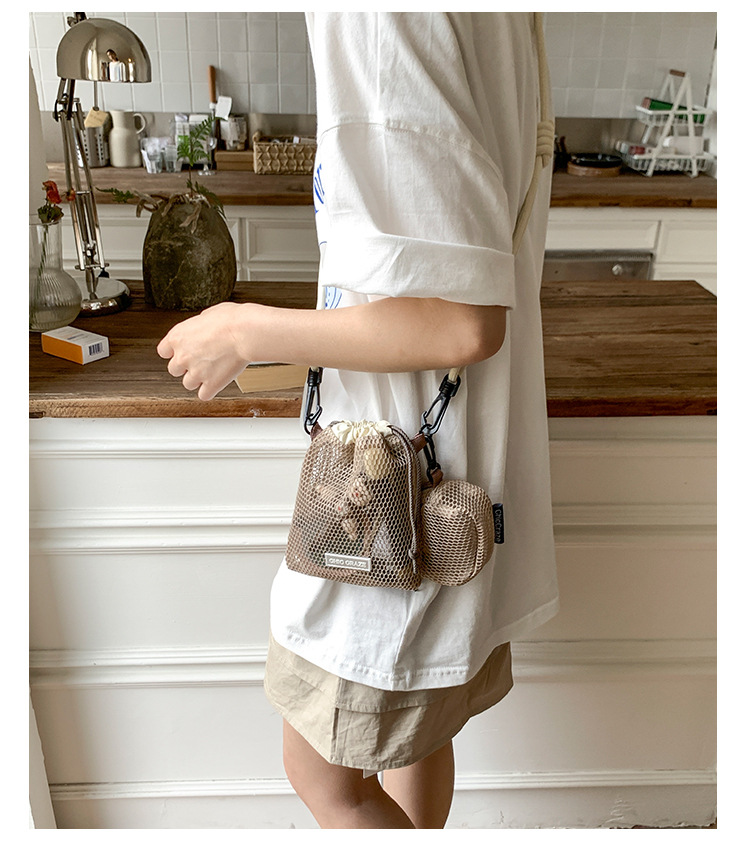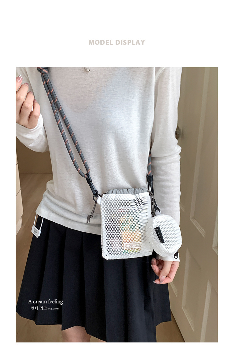 여성을위한 달콤한 작은 신선한 휴대 전화 가방 2025 여름 새로운 중공 어깨 가방 크로스 바디 메쉬 휴대용 버킷 가방스토어 가기