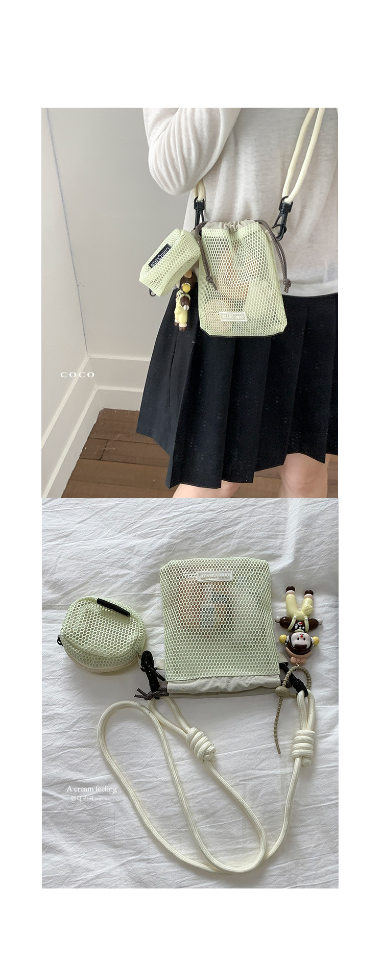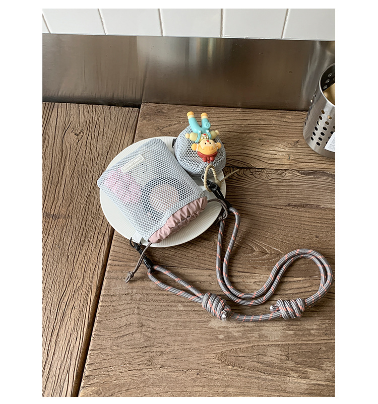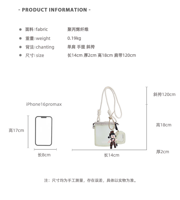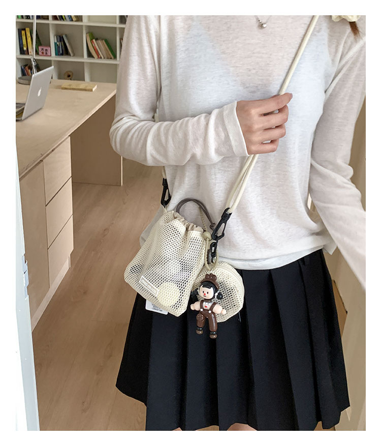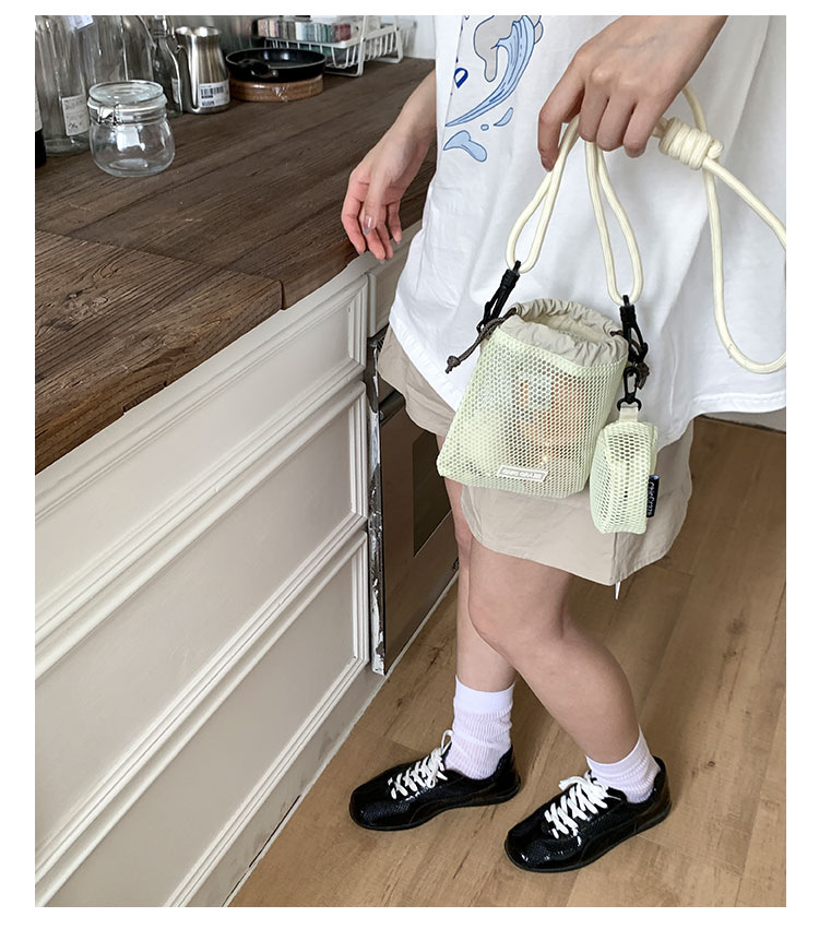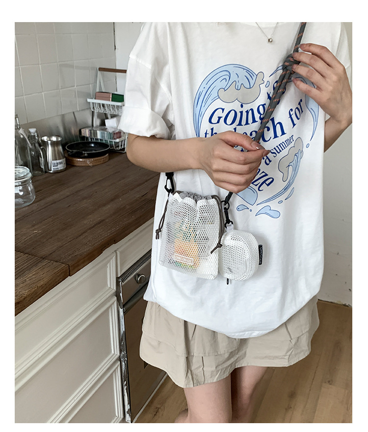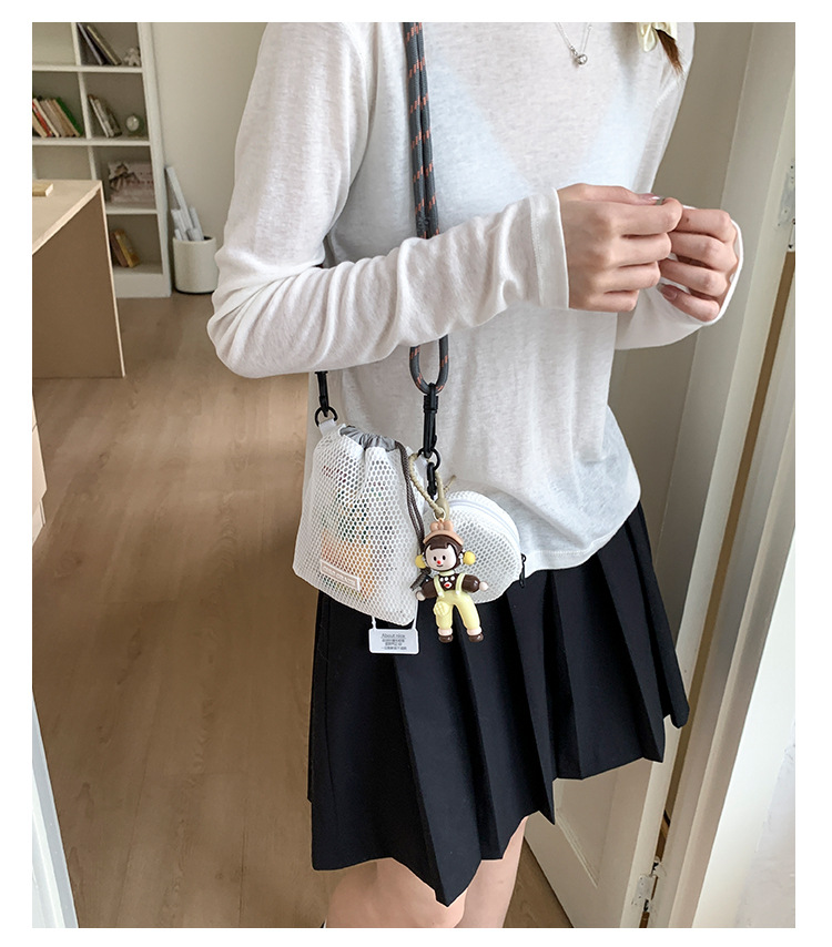 여성을위한 달콤한 작은 신선한 휴대 전화 가방 2025 여름 새로운 중공 어깨 가방 크로스 바디 메쉬 휴대용 버킷 가방스토어 가기