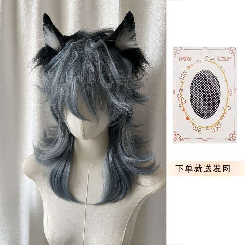 남성용 및 여성용 가발, 그레이 미스트 블루 늑대 꼬리 머리, 참치 머리, 달콤하고 시원한 레이어드, 멋지고 패셔너블하며 자연스러운 풀 헤드 커버 스타일스토어 가기