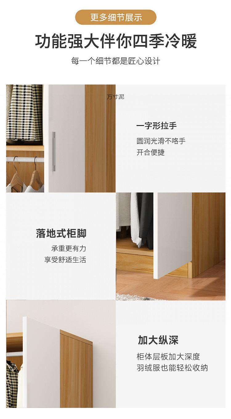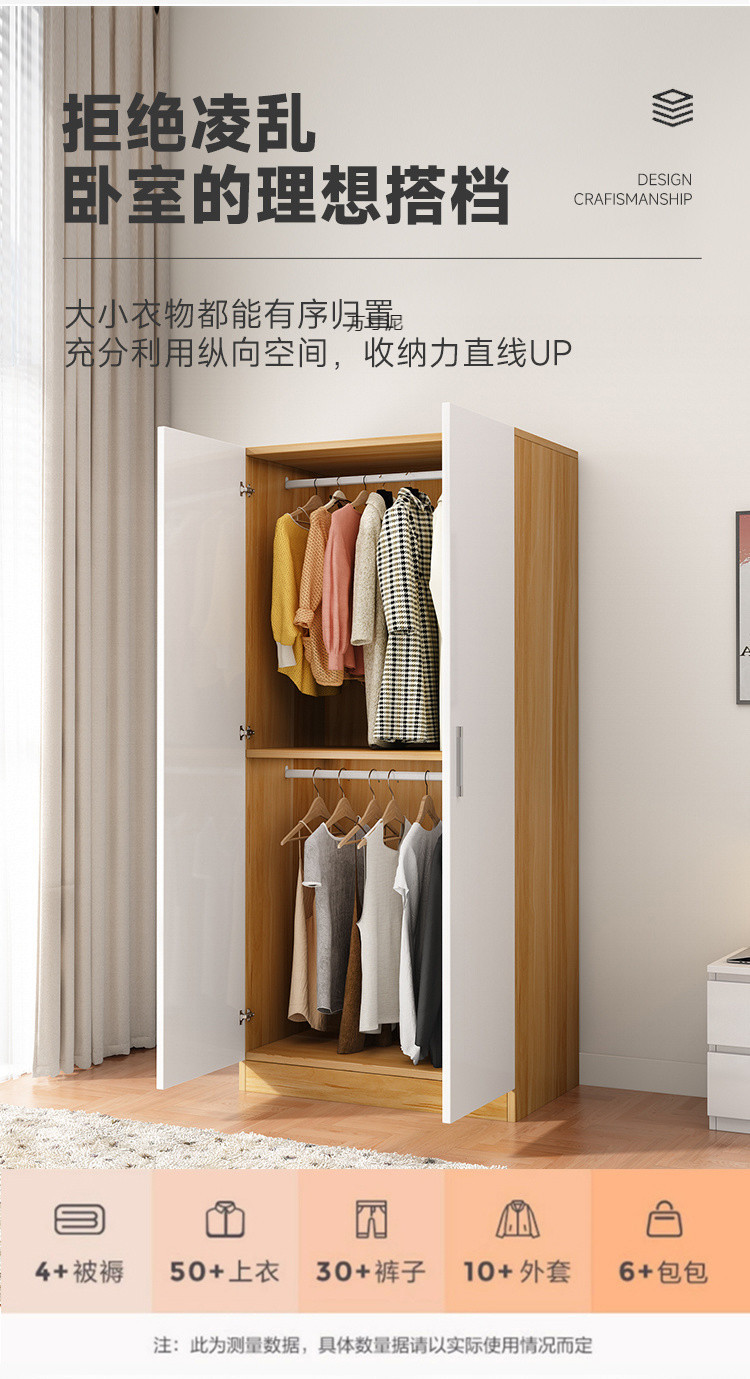 옷장 홈 침실 간단한 조립 임대 주택 경제적 인 양문형 목재 두꺼운 옷장 현대 간단한 캐비닛