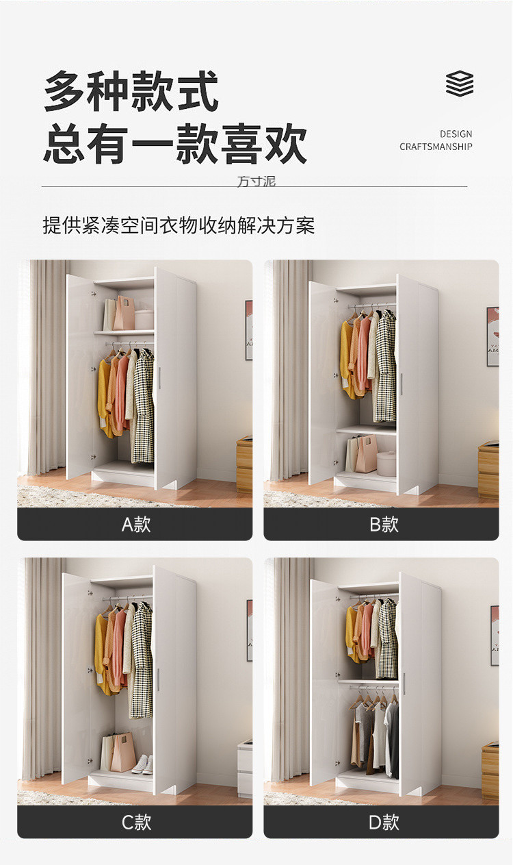 옷장 홈 침실 간단한 조립 임대 주택 경제적 인 양문형 목재 두꺼운 옷장 현대 간단한 캐비닛스토어 가기