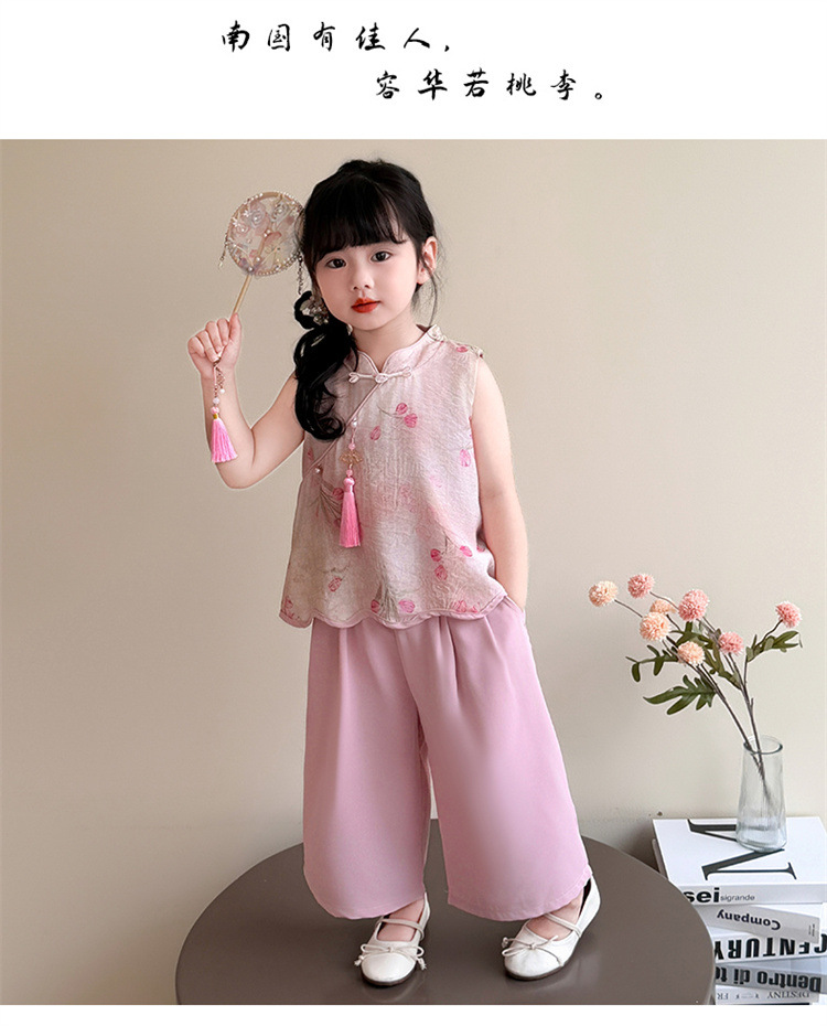 여자 중국 스타일 정장 여름 2025 새로운 중국 스타일 아동복 치파오 아기 소녀 여름 옷 Hanfu 투피스 세트