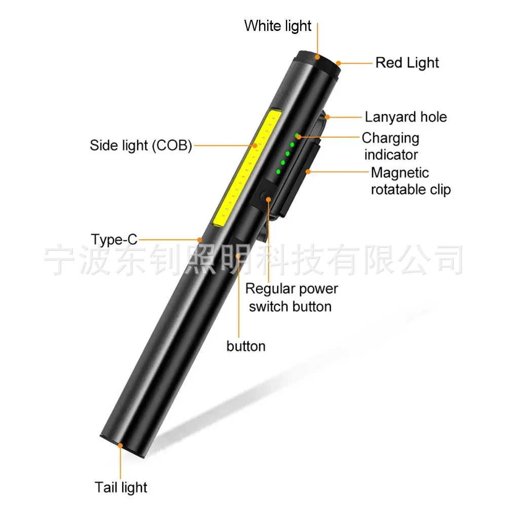 국경 간 휴대용 COB 손전등 테일 자석 작업 조명 LED 조명 휴대용 다기능 자동차 점검 조명