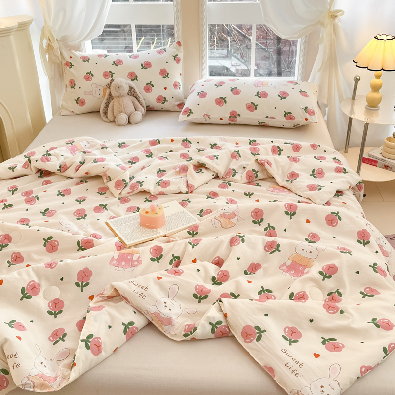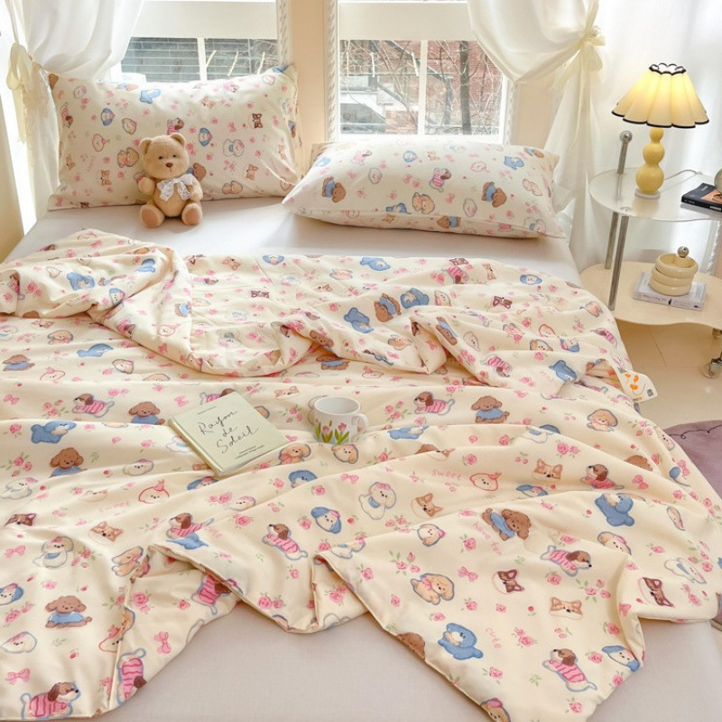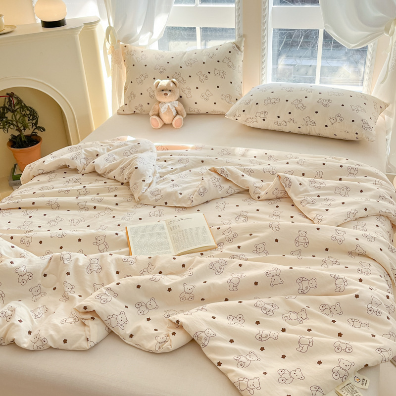 더블 레이어 원사 에어컨 이불 여름 시원한 이불 여름 얇은 이불 어린이 콩 섬유 이불 유치원 여름 이불 코어 봄과 가을 이불스토어 가기