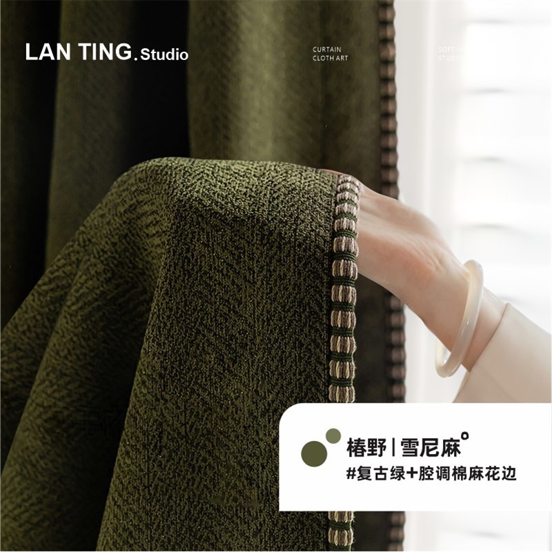 고급 린넨 스타일 프렌치 복고풍 커튼 차광 2024 새로운 고급 침실 골동품 거실 미국 셔닐