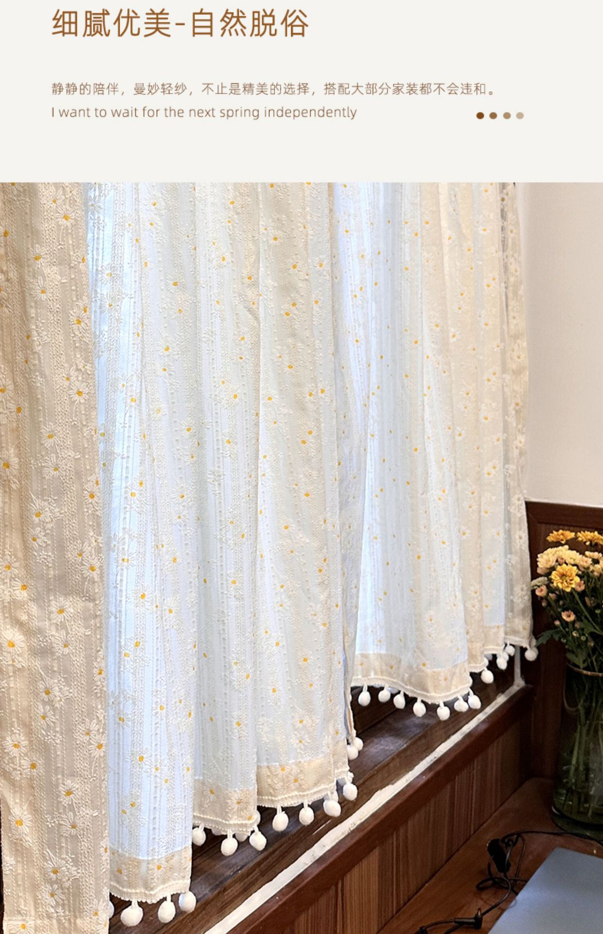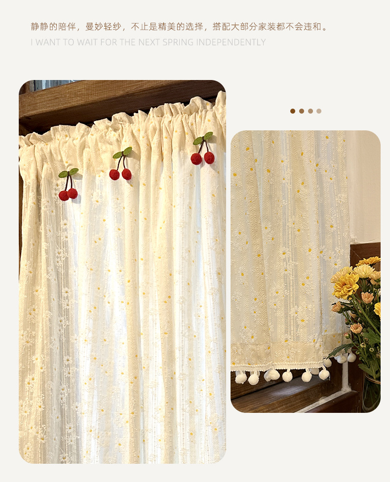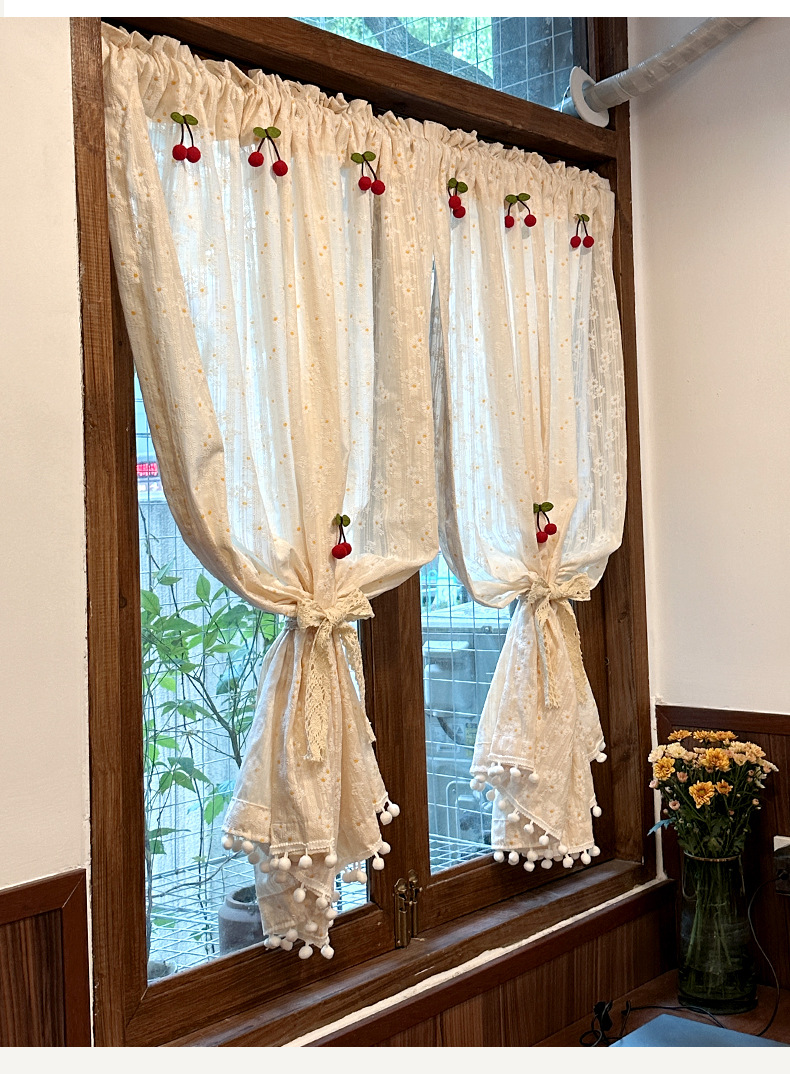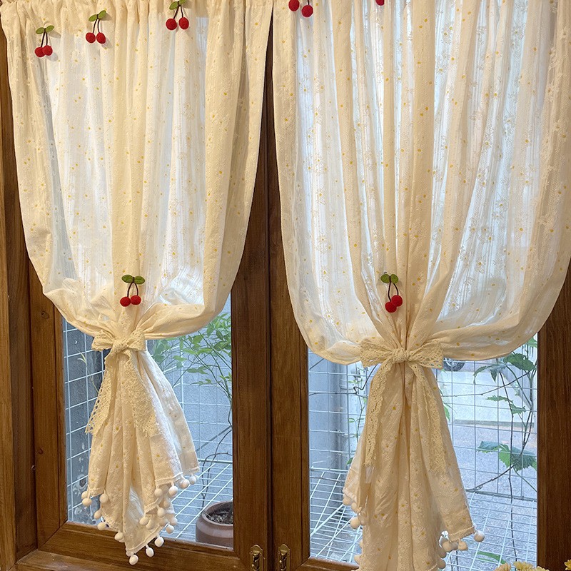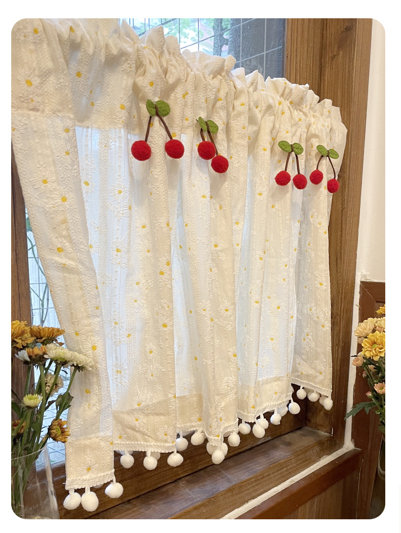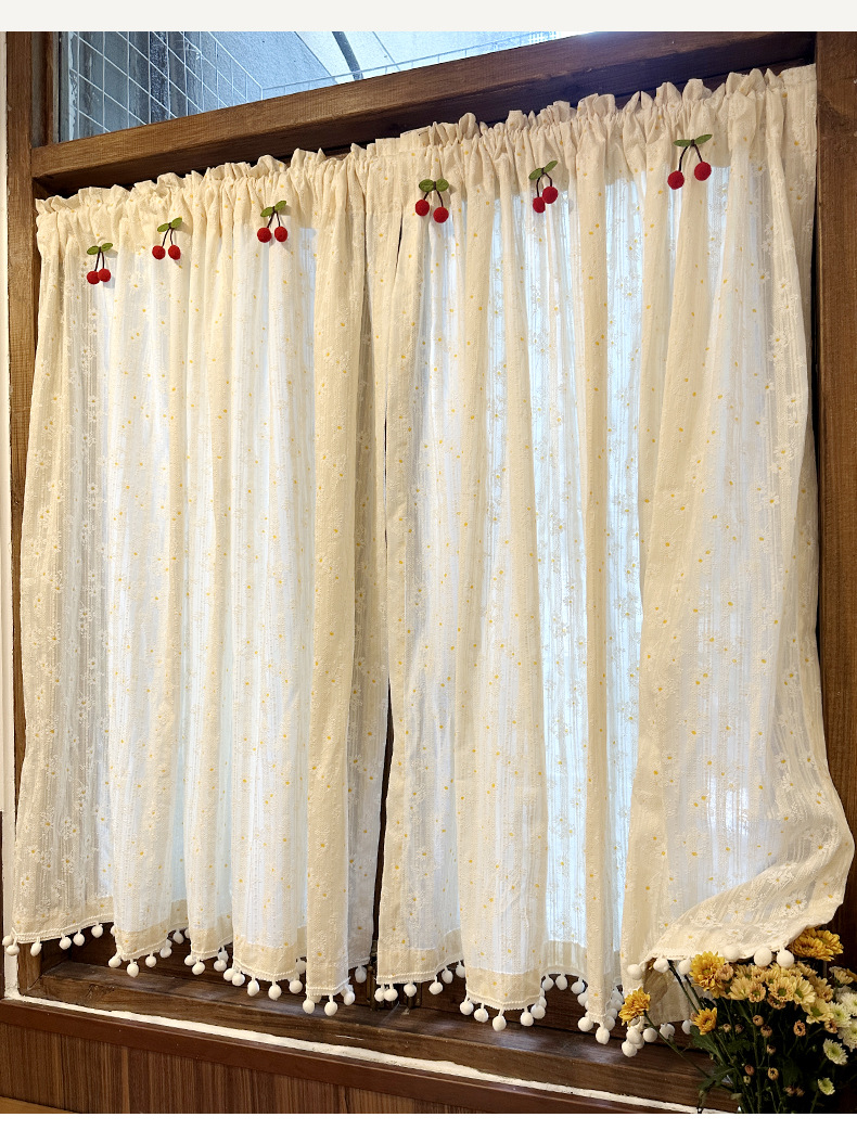 한국 전원풍 프렌치 데이지 꽃무늬 면과 린넨 커튼은 펀치 없이 설치가 가능하며 반투명하고 반투명합니다.스토어 가기
