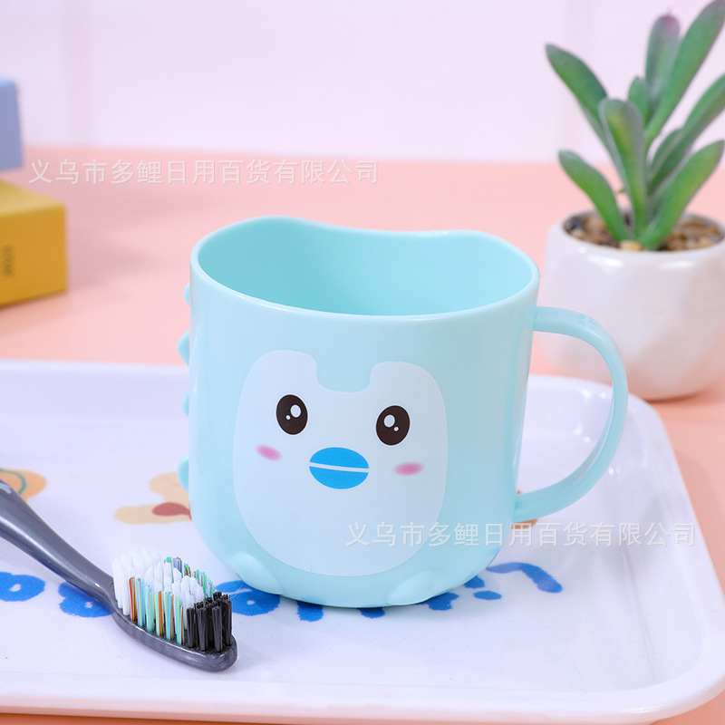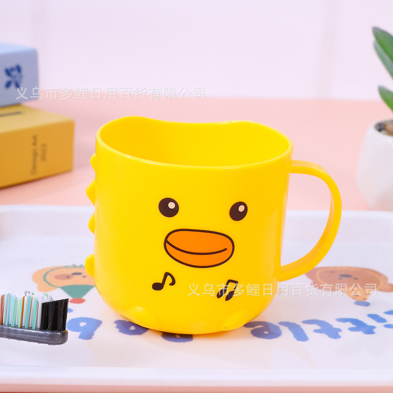 두꺼운 귀여운 만화 작은 노란색 오리 컵 손잡이가있는 플라스틱 칫솔질 구강 세척제 컵 휴대용 크리 에이 티브 워시 컵 도매스토어 가기