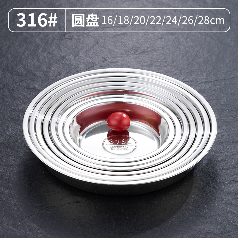 316 식품 등급 스테인레스 스틸 대형 원형 접시 가정용 얕은 접시 찜 접시 원형 트레이 철판 접시 아침 식사 접시