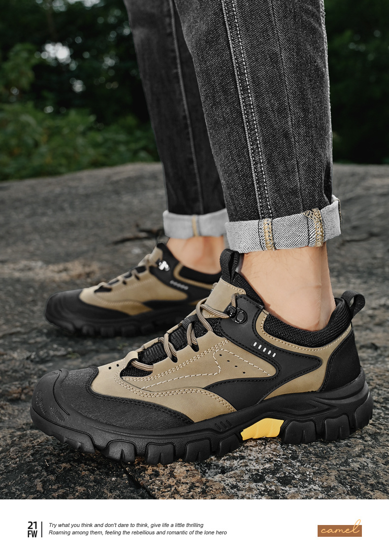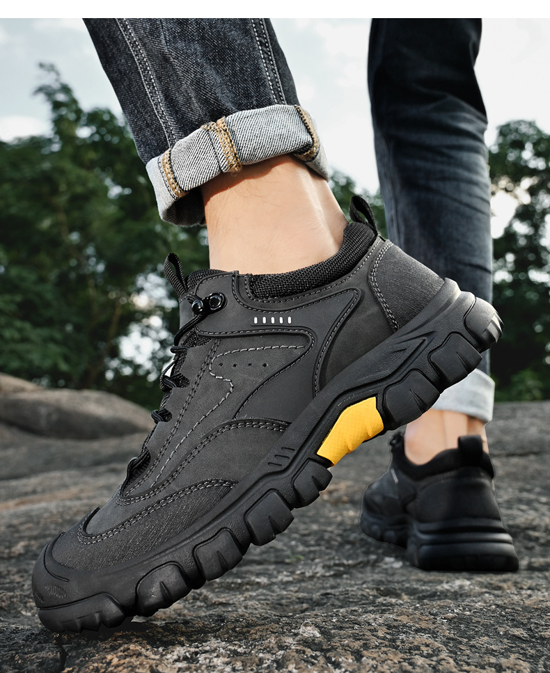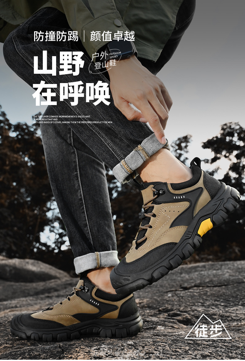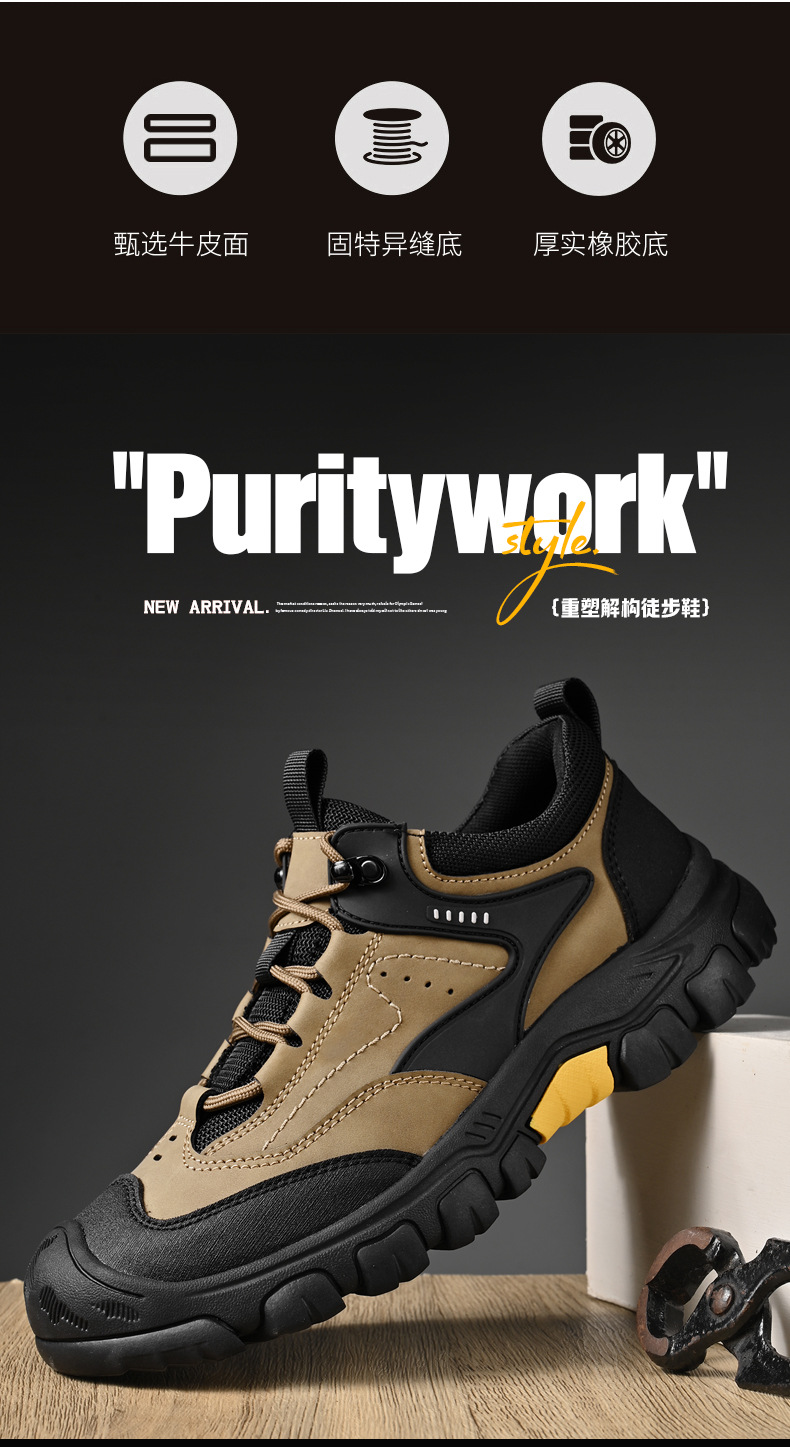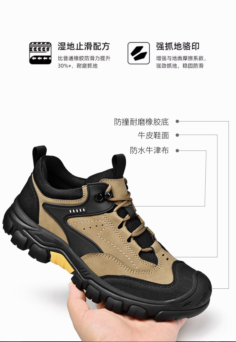 국경 간 독립 스테이션 인기 정품 가죽 야외 작업 신발 남성용 Baotou 미끄럼 방지 로우 탑 하이킹 신발 캐주얼 신발