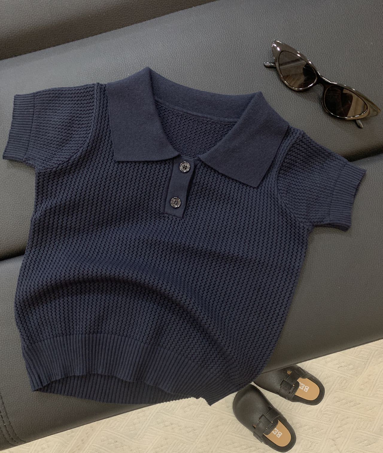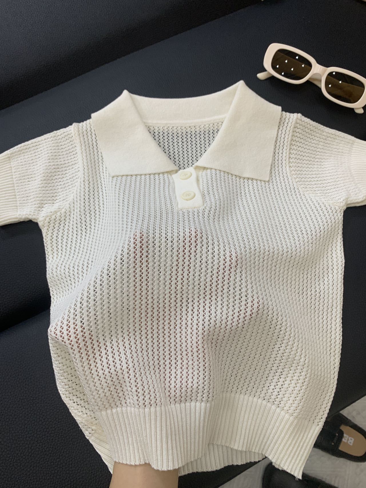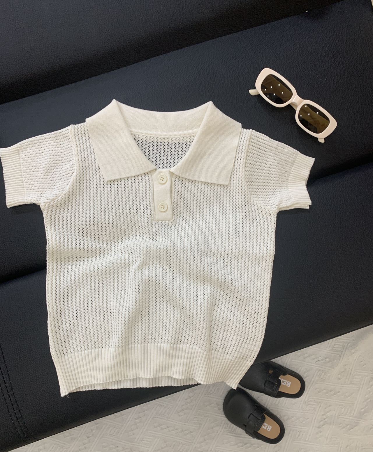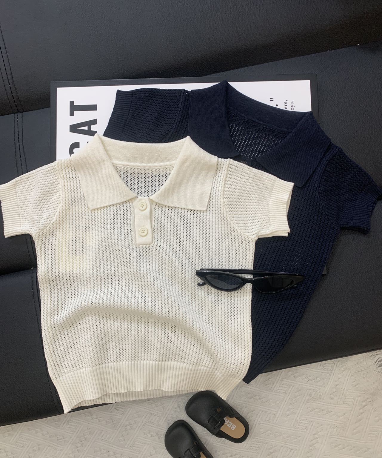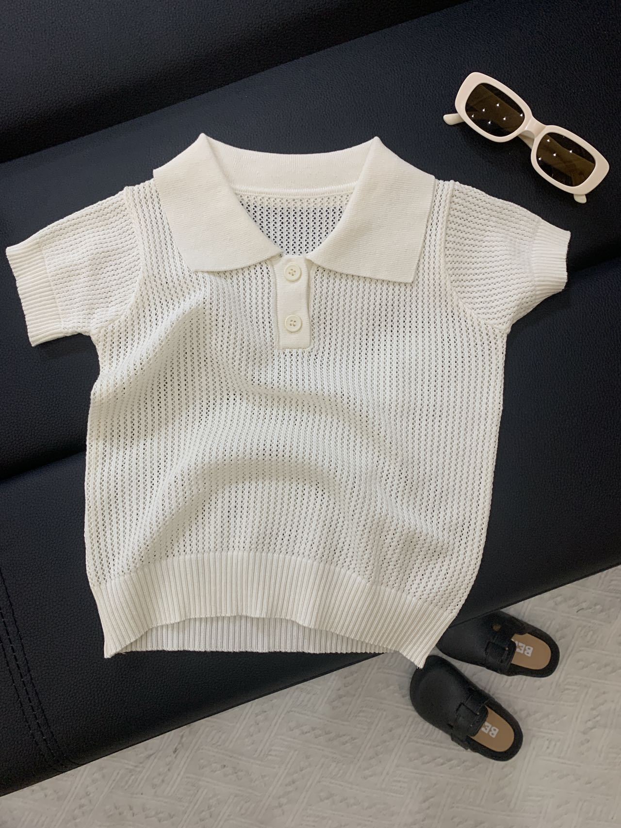 여름 새로운 어린이 폴로 칼라 얼음 실크 반팔 중공 스웨터 패션 아동 의류 다목적 짧은 티셔츠 도매