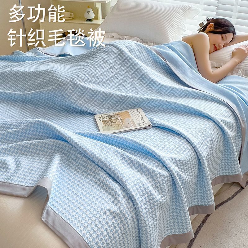 클래스 A 니트 면 담요, 시원한 에어컨 담요, 여름 사무실 낮잠 담요, 세탁기로 세탁 가능한 물떼새 격자 수건 이불스토어 가기