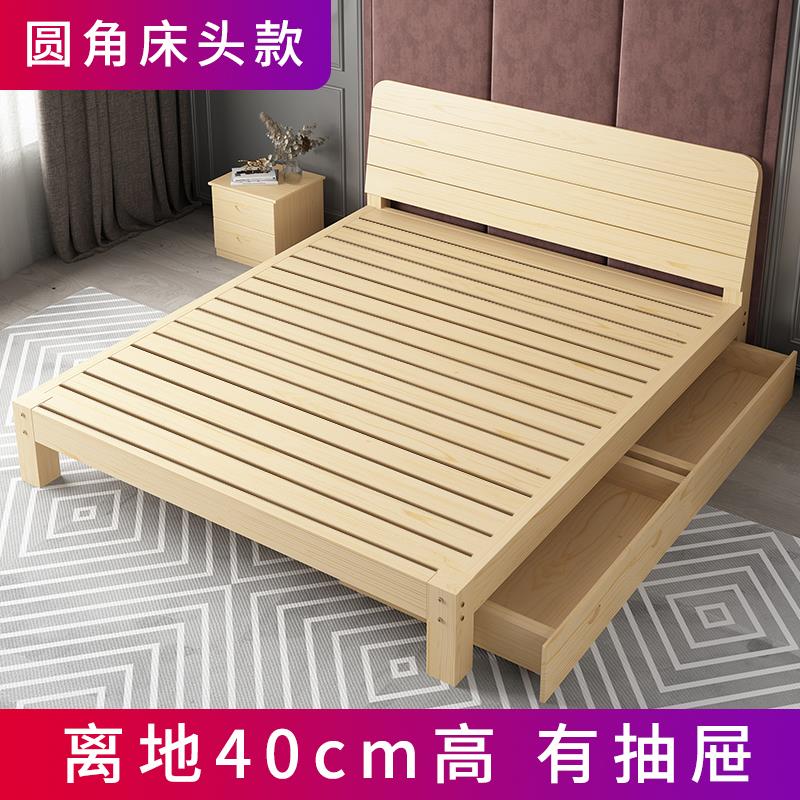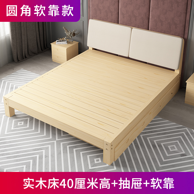 • 원목 침대 40cm 높이 + 서랍 + 부드러운 등받이
