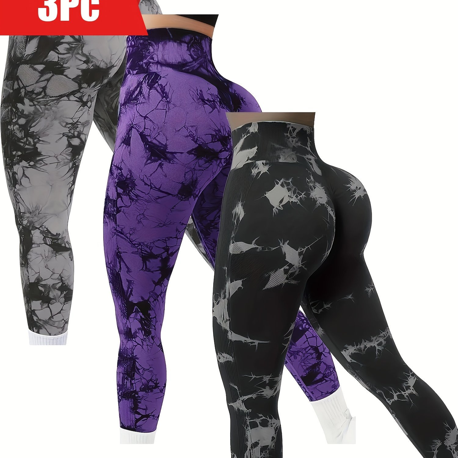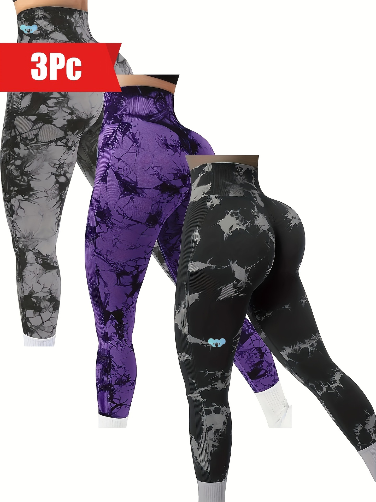 여성용 하이 웨이스트 타이 염료 요가 레깅스 3개