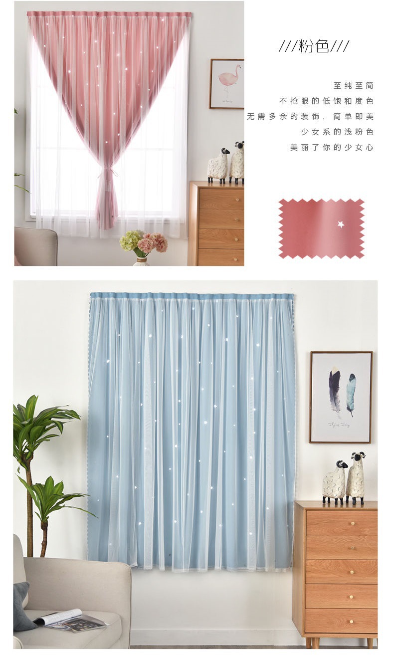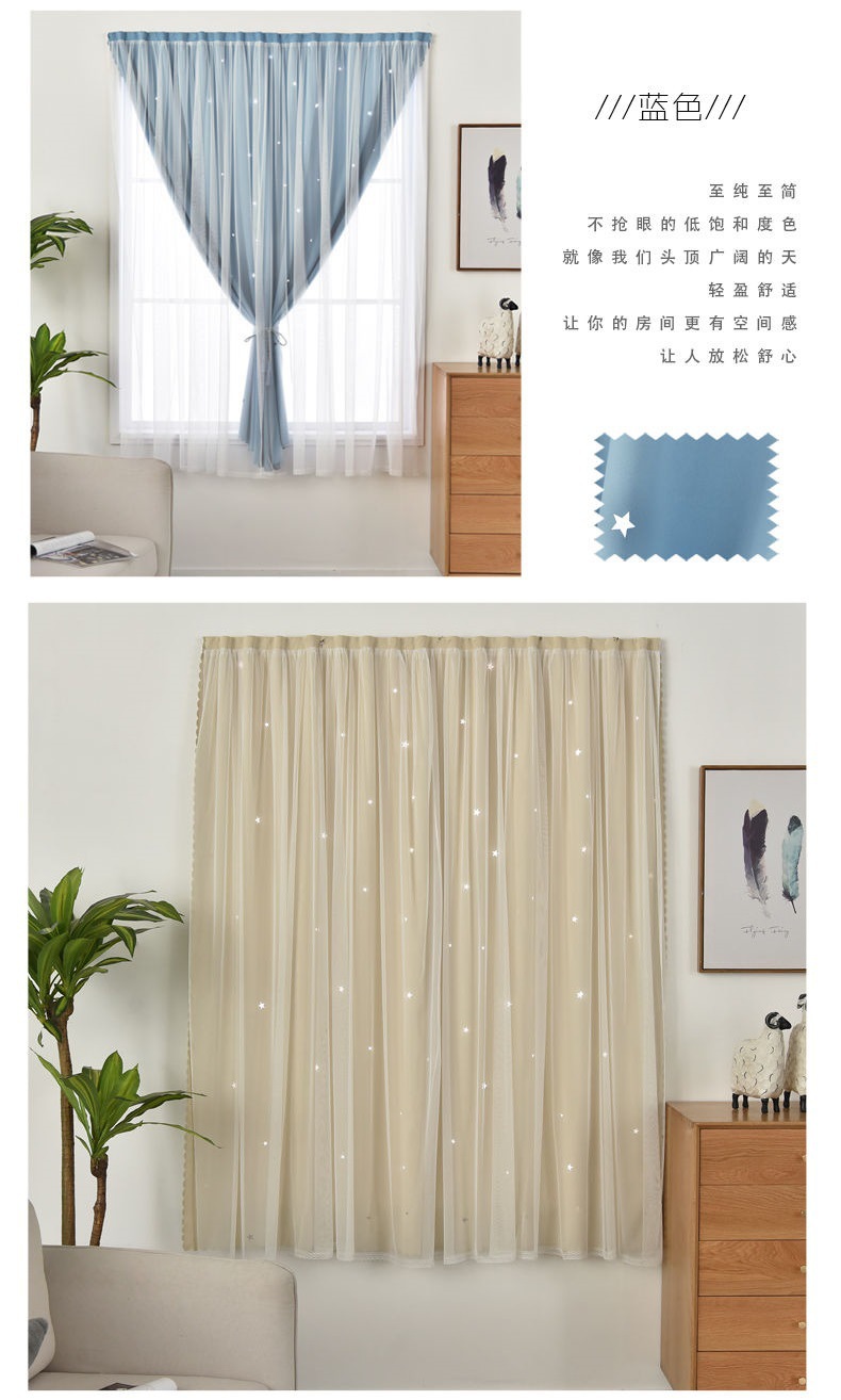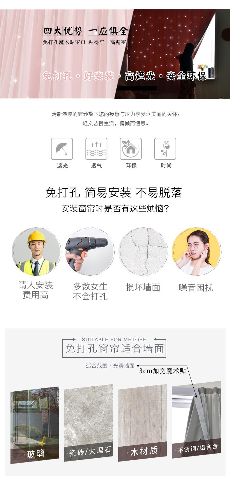 펀치 없는 벨크로 임대 주택 접착 커튼 기숙사 인터넷 연예인 짧은 커튼 침실 중공 스타 커튼 완제품 특별 가격스토어 가기