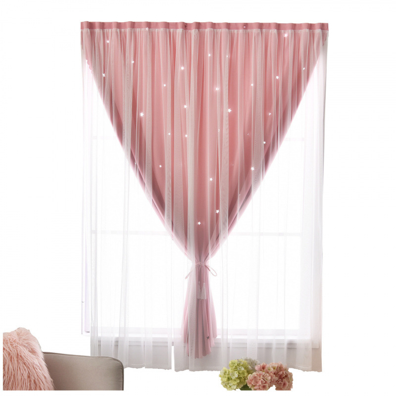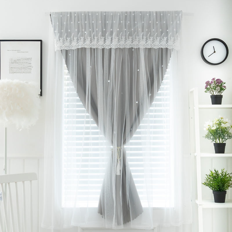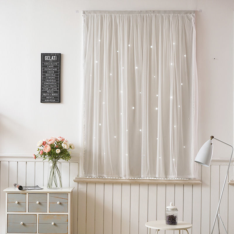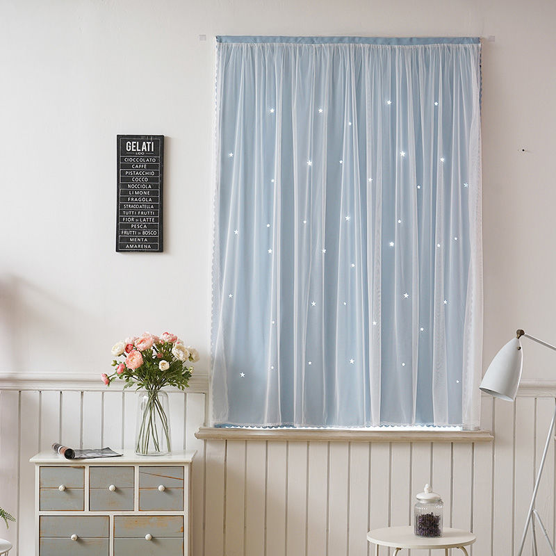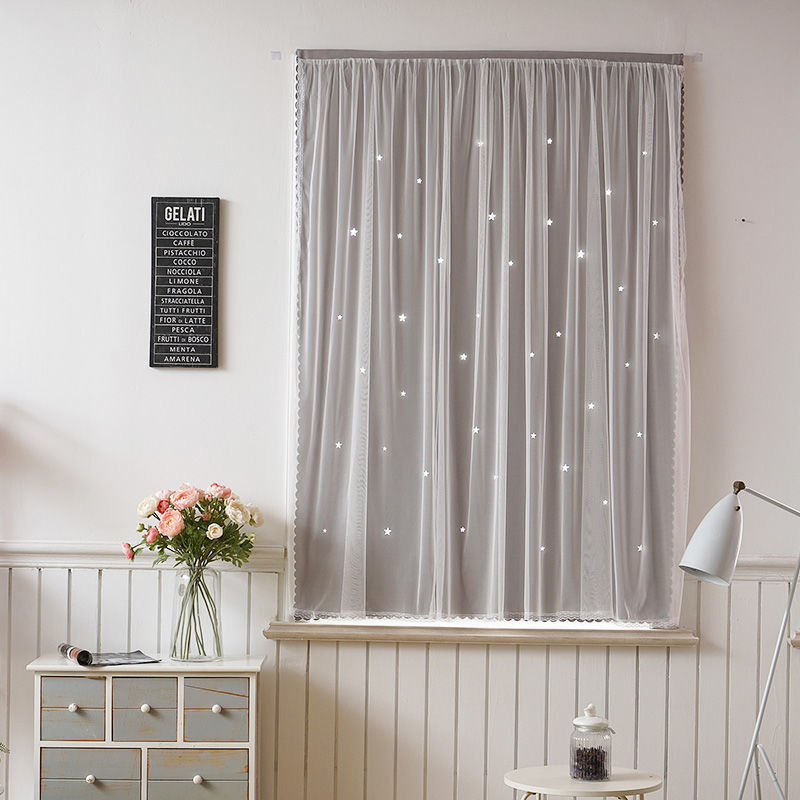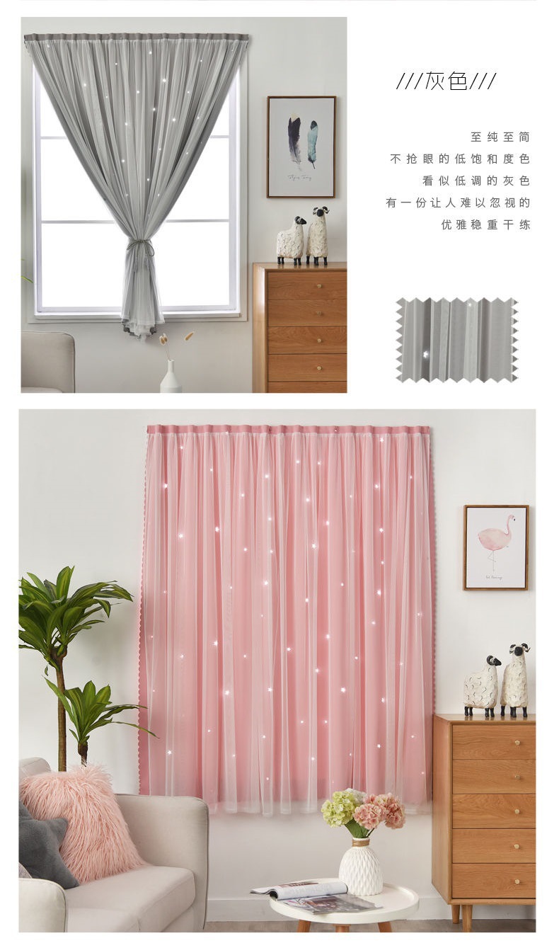 펀치 없는 벨크로 임대 주택 접착 커튼 기숙사 인터넷 연예인 짧은 커튼 침실 중공 스타 커튼 완제품 특별 가격스토어 가기