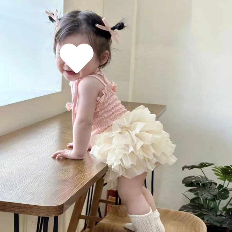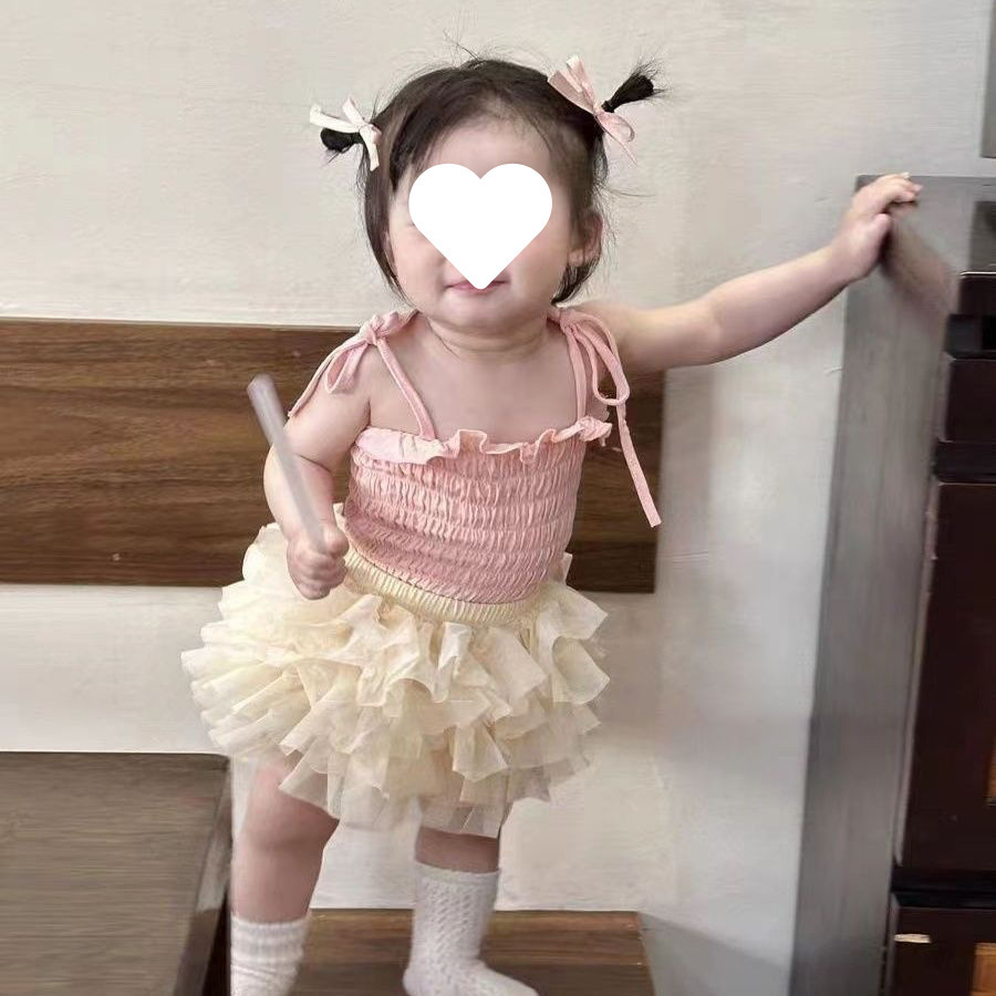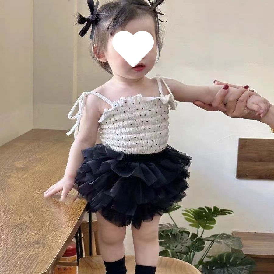 여자 여름 투투 바지 스커트 투피스 세트 고품질 메쉬 케이크 스커트 아기 소녀 귀여운 조끼 반바지 유행스토어 가기