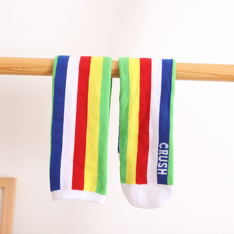 어린이 무지개 양말 봄, 가을, 여름 얇은 중간 튜브 양말 소년과 소녀를위한 세로 무지개 양말 아기 무릎 위 스타킹