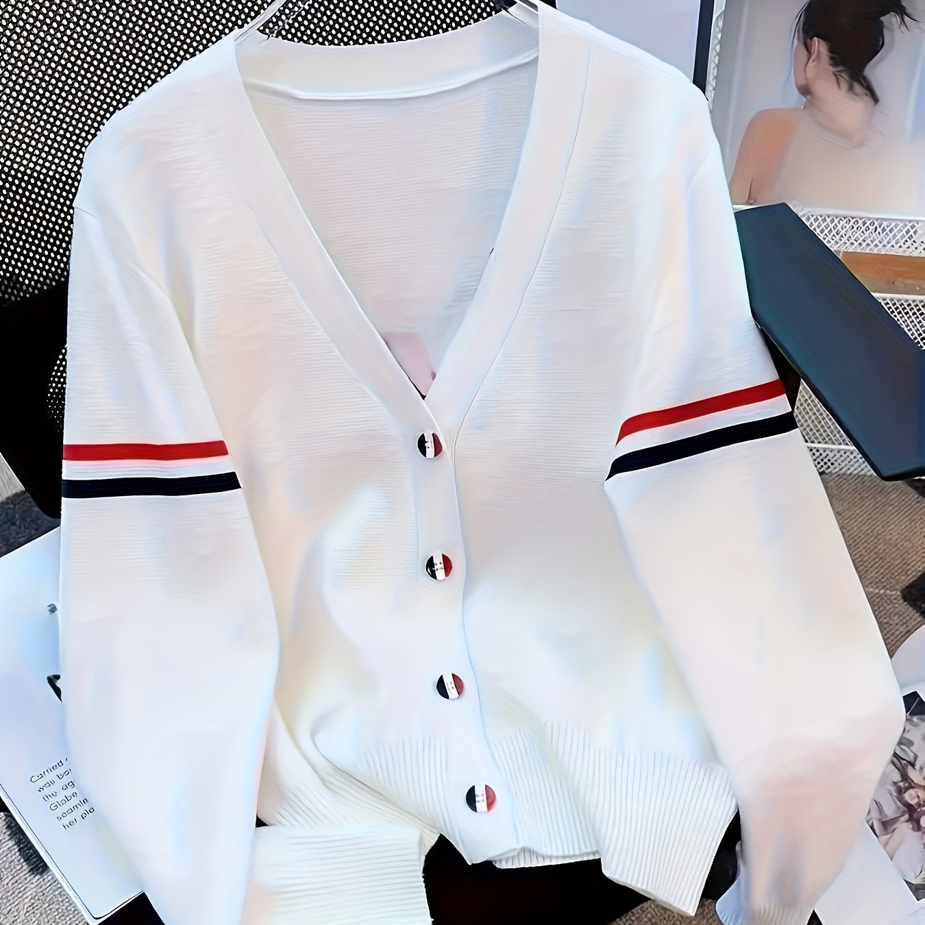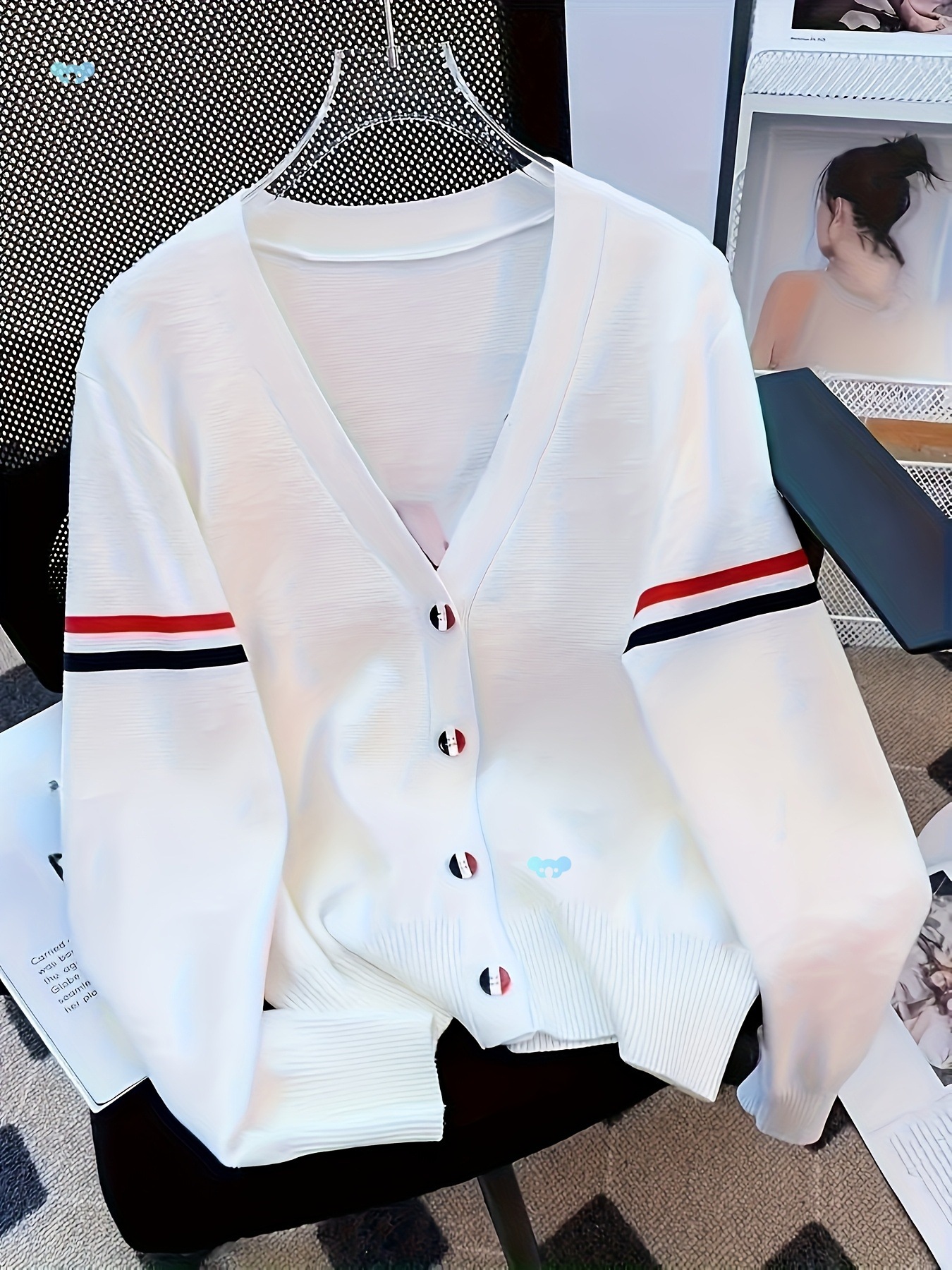 세 개의 줄무늬가 있는 여성용 카디건 재킷 국경 간 배송스토어 가기