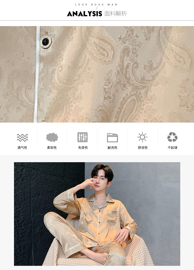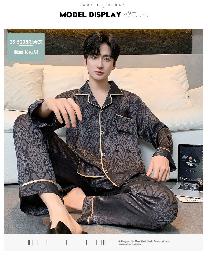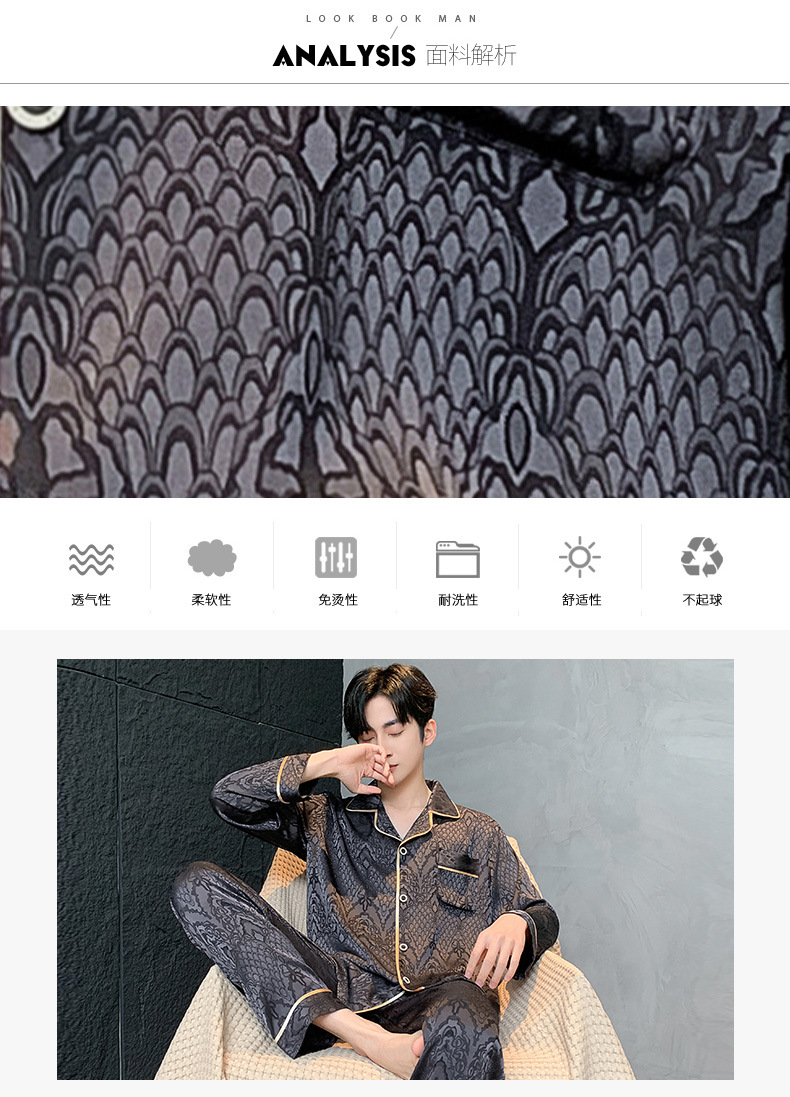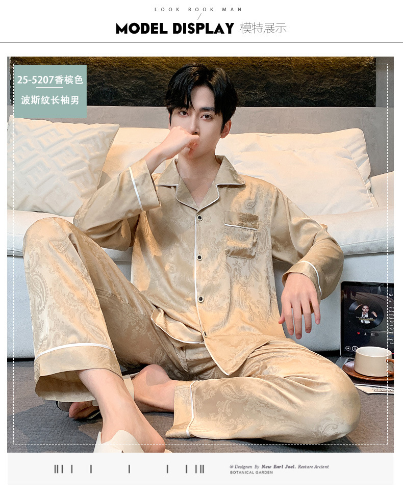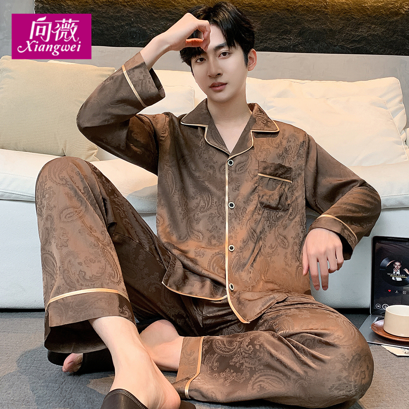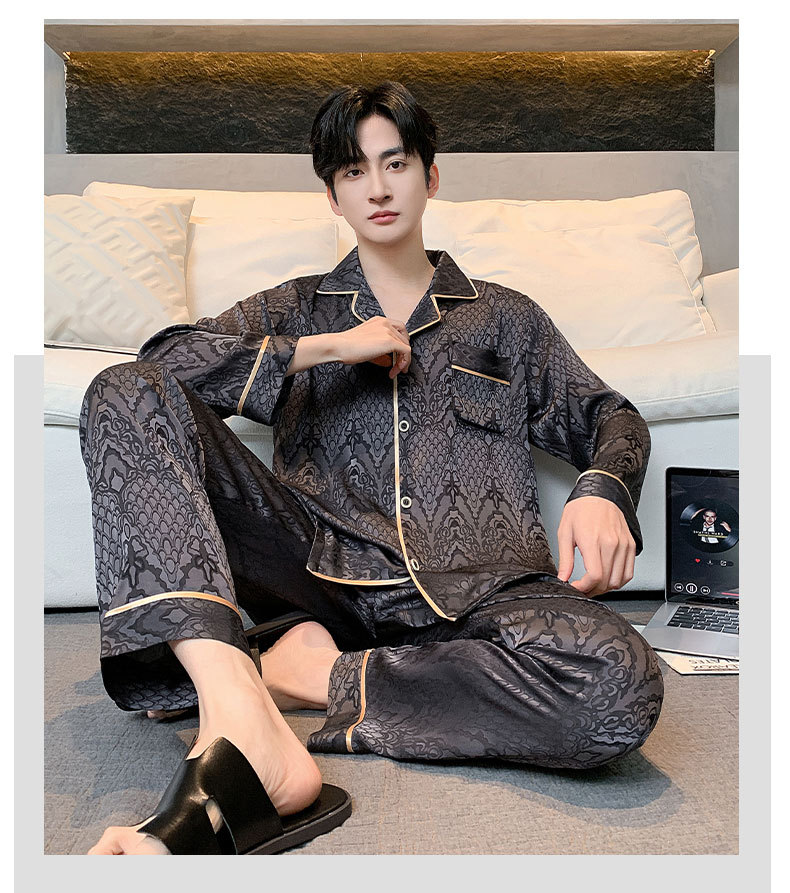 여름 얇고 가벼운 럭셔리 남성용 얼음과 눈 실크 웨어러블 사계절 홈웨어 대형 루즈 긴팔 잠옷 세트스토어 가기