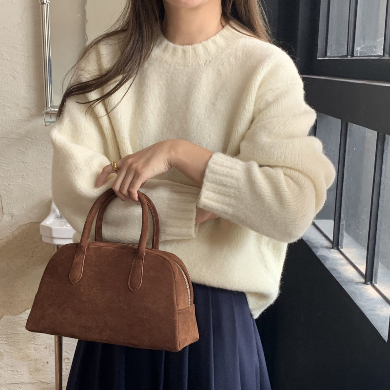 2025 한국 틈새 신작 패션 볼링 스웨이드 보스턴백 복고풍 핸드백 가방 여성 귀여운 통근