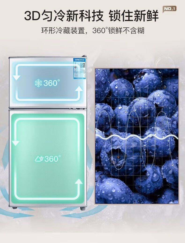 냉장고 가정용 양문형 소형 2인용 미니 냉동고 냉동 및 냉장 기숙사 임대 에너지 절약형 비용 효율적인 배치