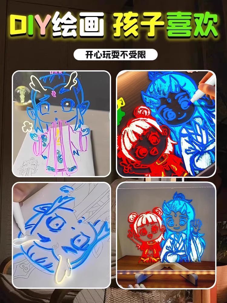 국경 간 DIY 어린이 발광 드로잉 보드 스톨 LED 광고판 필기 보드 부모-자식 대화 형 어린이 문구 선물 배치스토어 가기