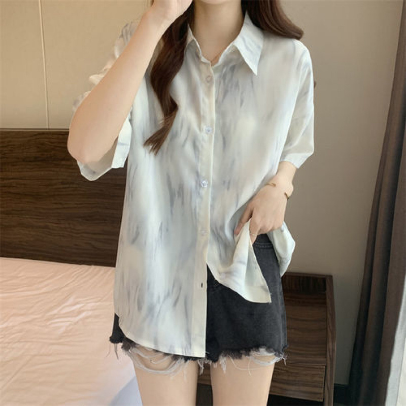 2025 한국판 새 스타일 달콤하고 짠 흰색 셔츠 루즈 슬리밍 캐주얼 반팔 셔츠 여성 여름 탑스토어 가기