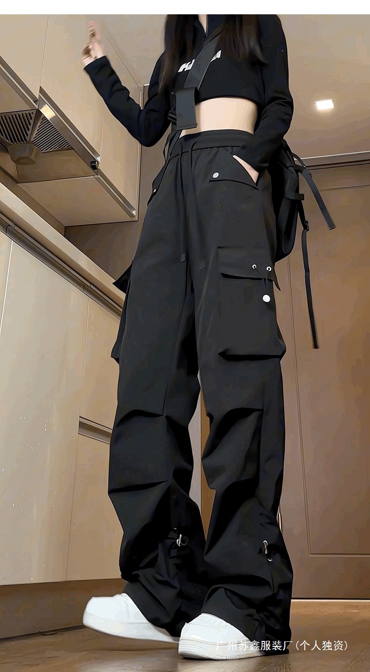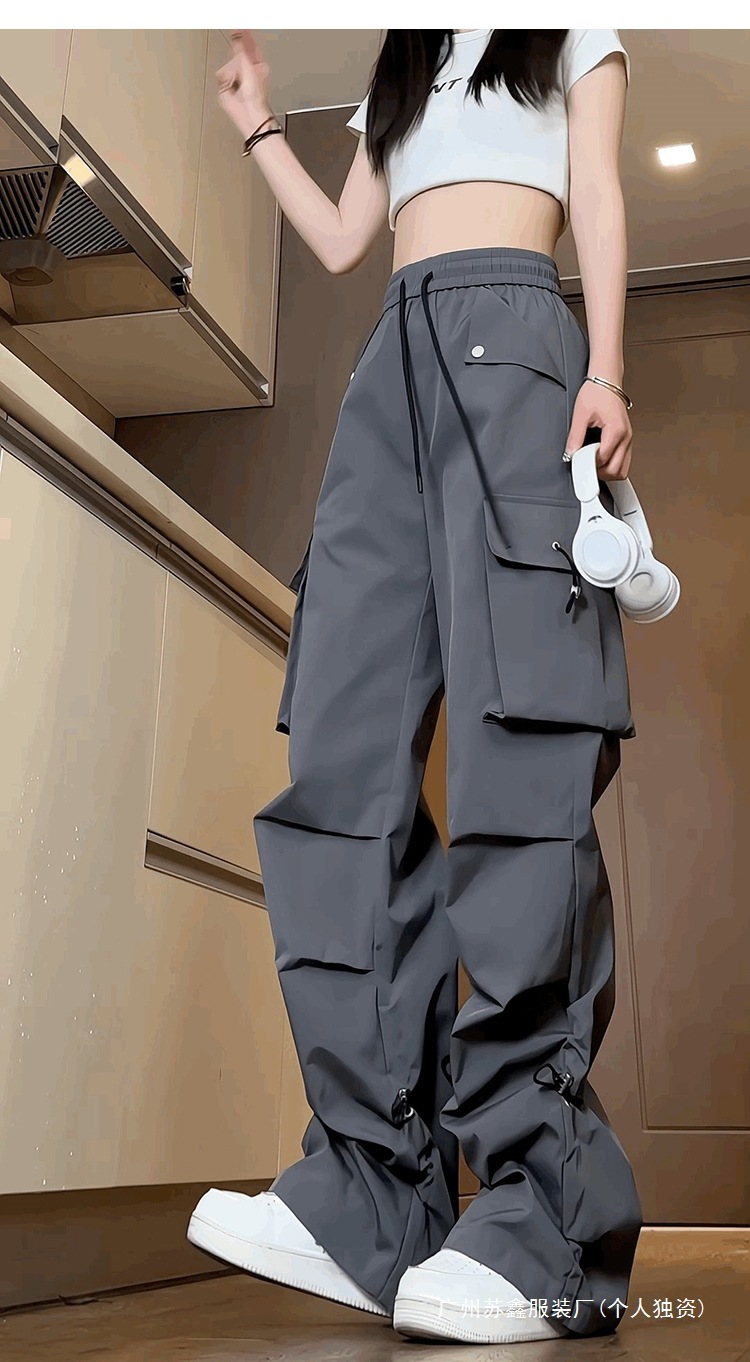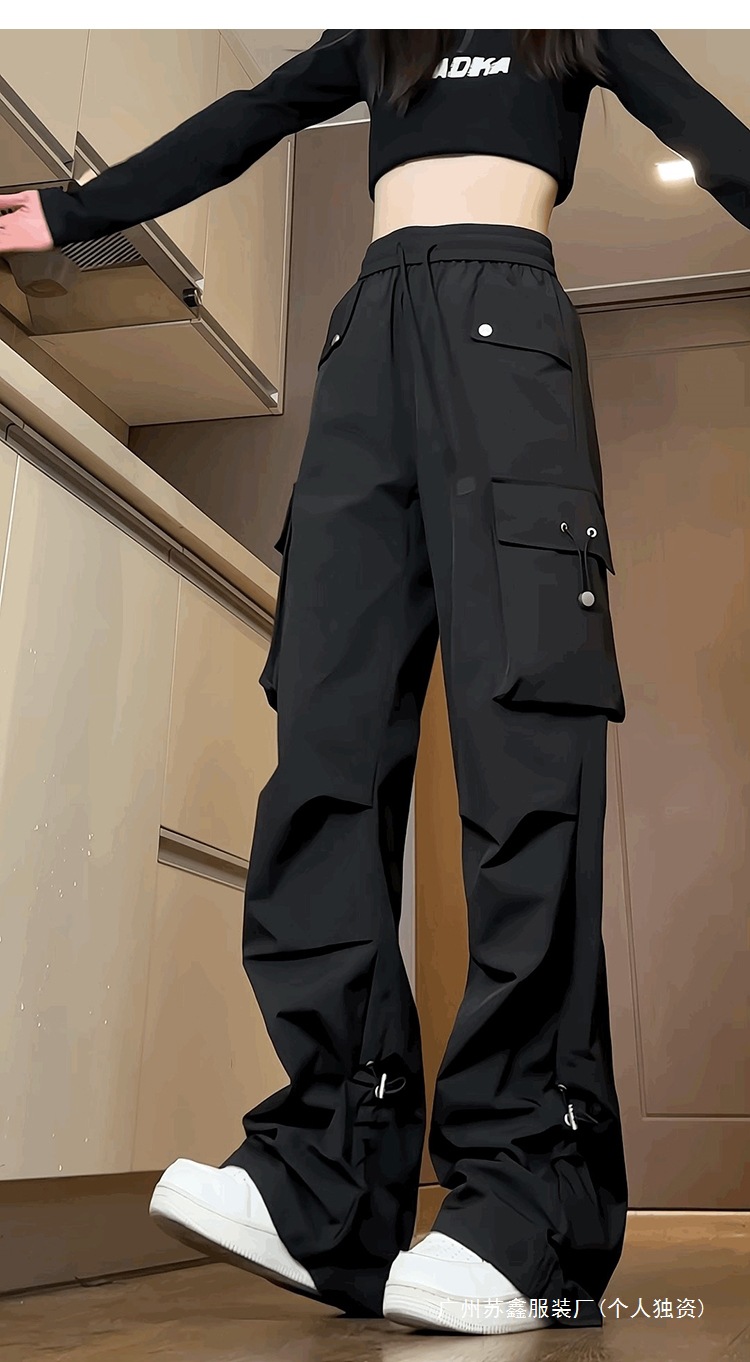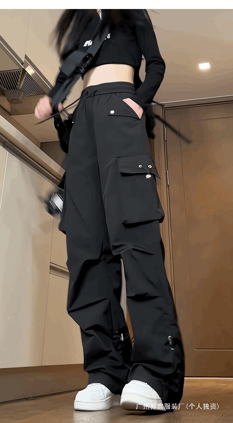 여성용 검은색 작업복 2025 새로운 스타일 작은 얇은 느슨한 방풍 및 방수 등산 여름 대형 충전 바지스토어 가기