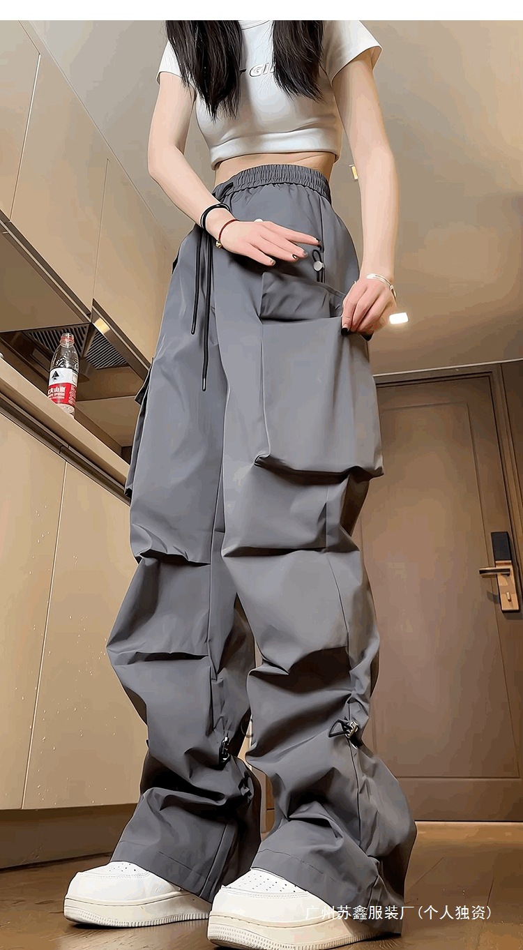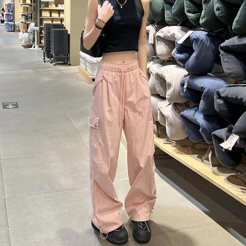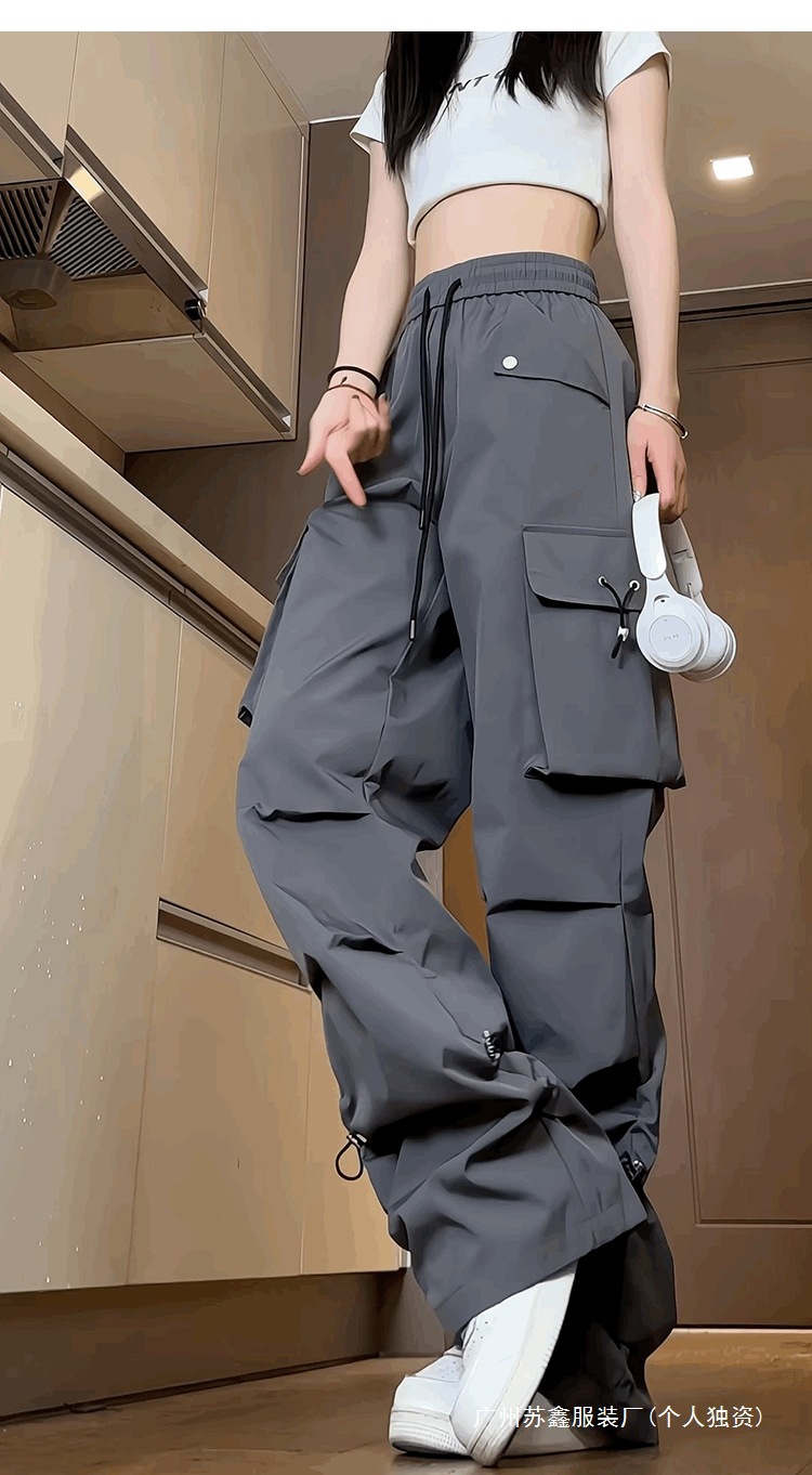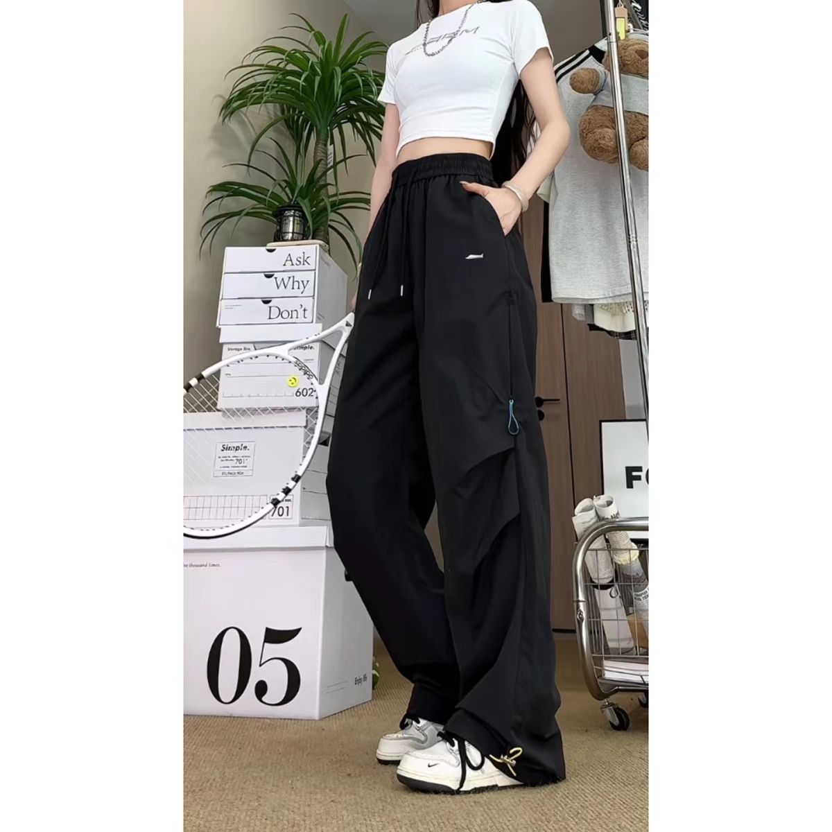 여성용 검은색 작업복 2025 새로운 스타일 작은 얇은 느슨한 방풍 및 방수 등산 여름 대형 충전 바지스토어 가기