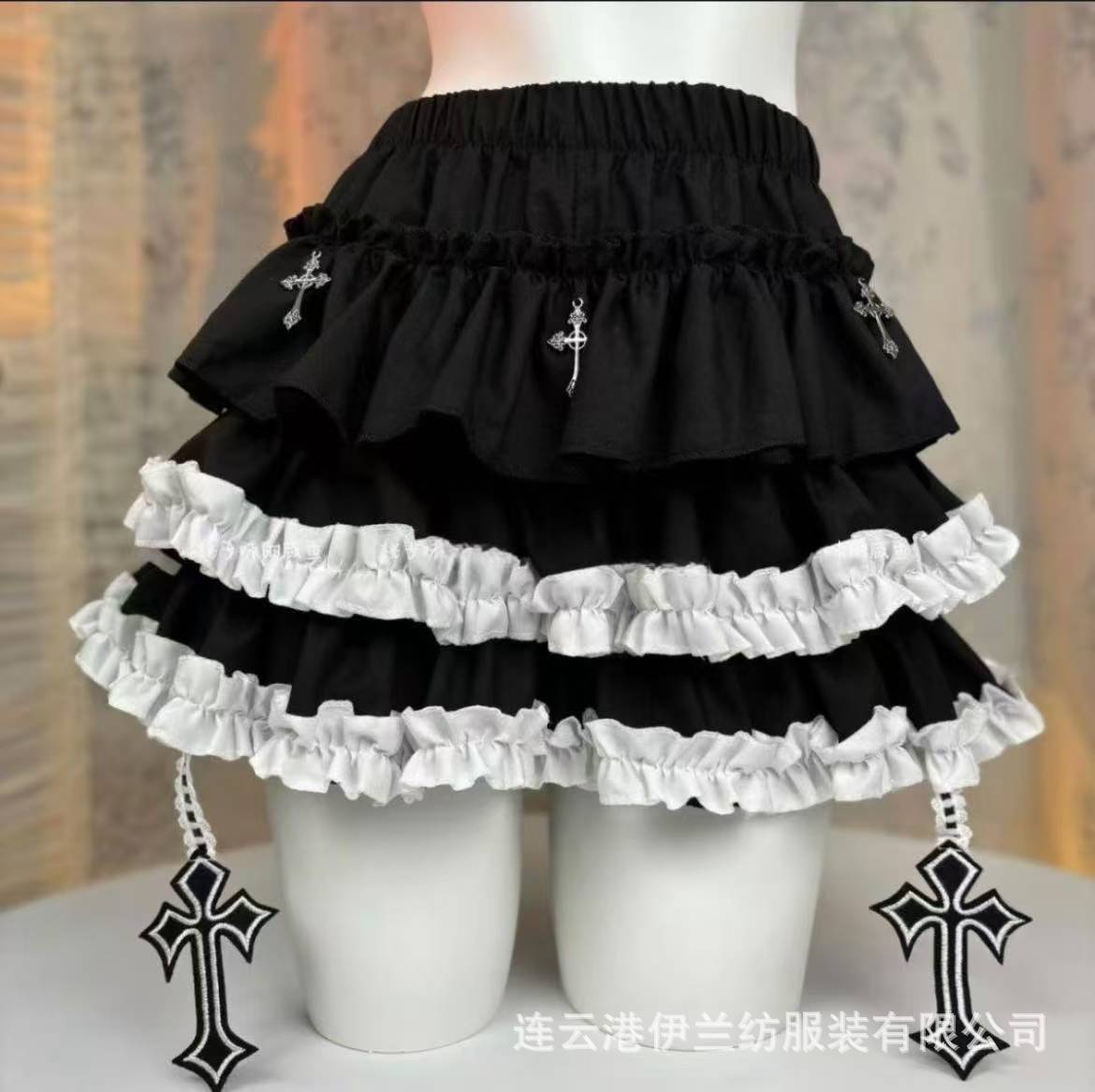 발을 길어 보이게 해주는 디자인 발레 아트 학생 핫걸 화이트 투투 스커트 더블 나무 귀 리본 작은 케이크 스커트