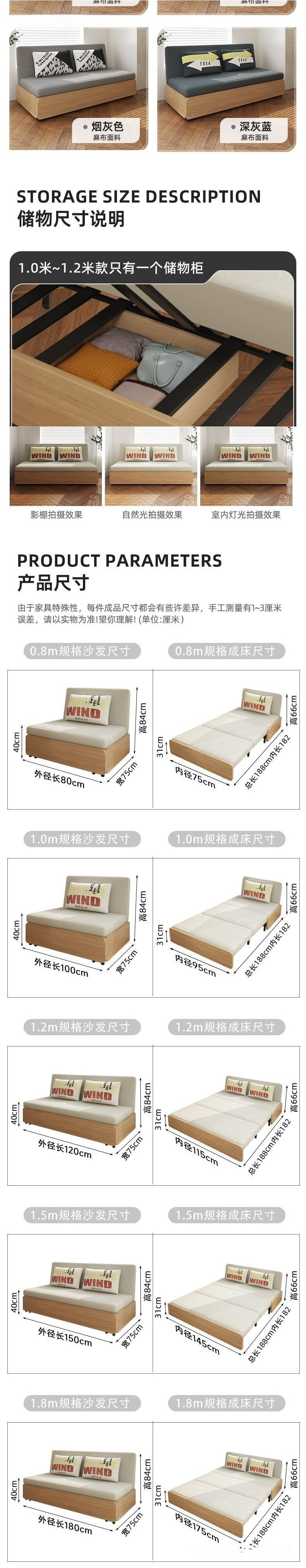 • +업그레이드된 총 폭 1.25m 고품질 스펀지 모델 [수납 없음] +