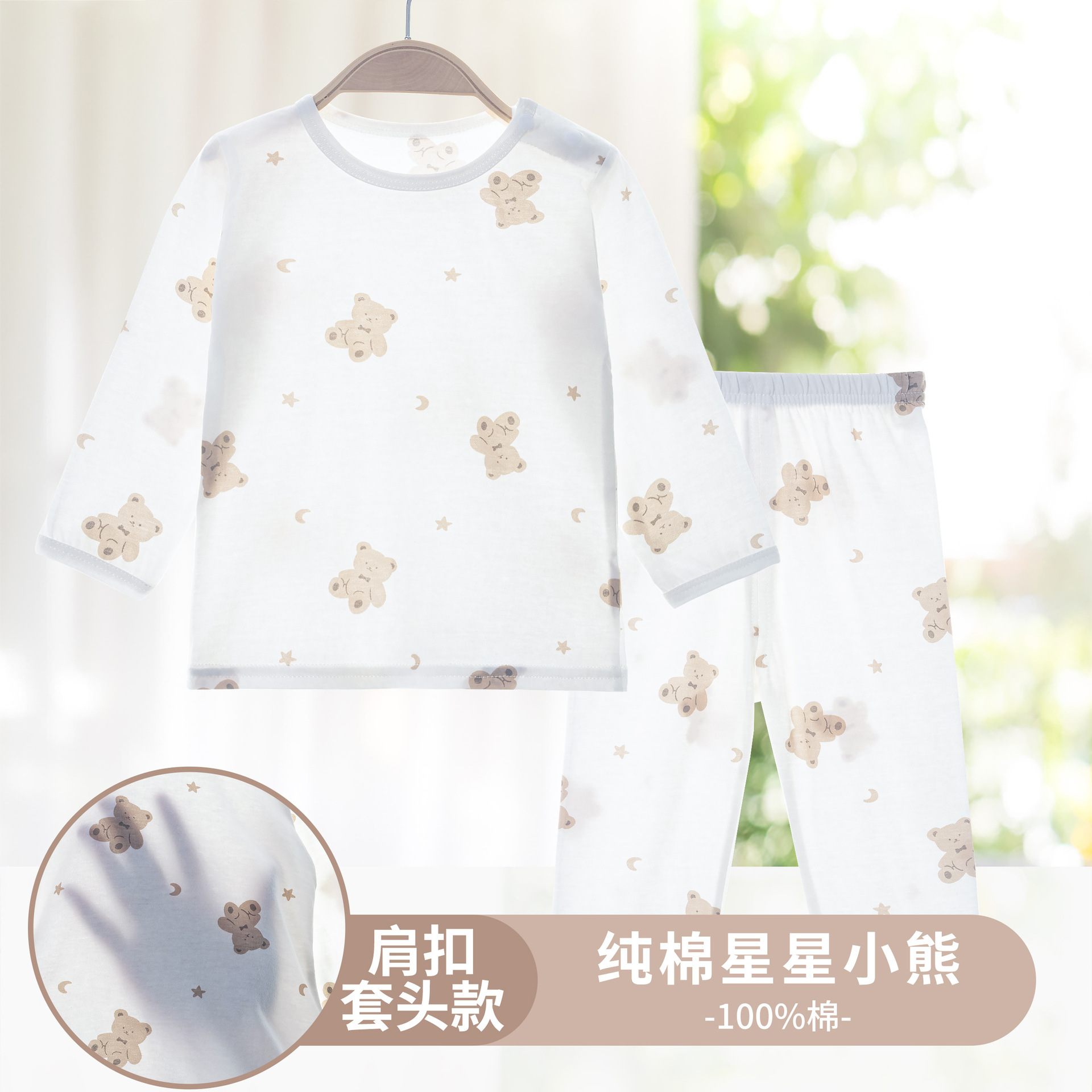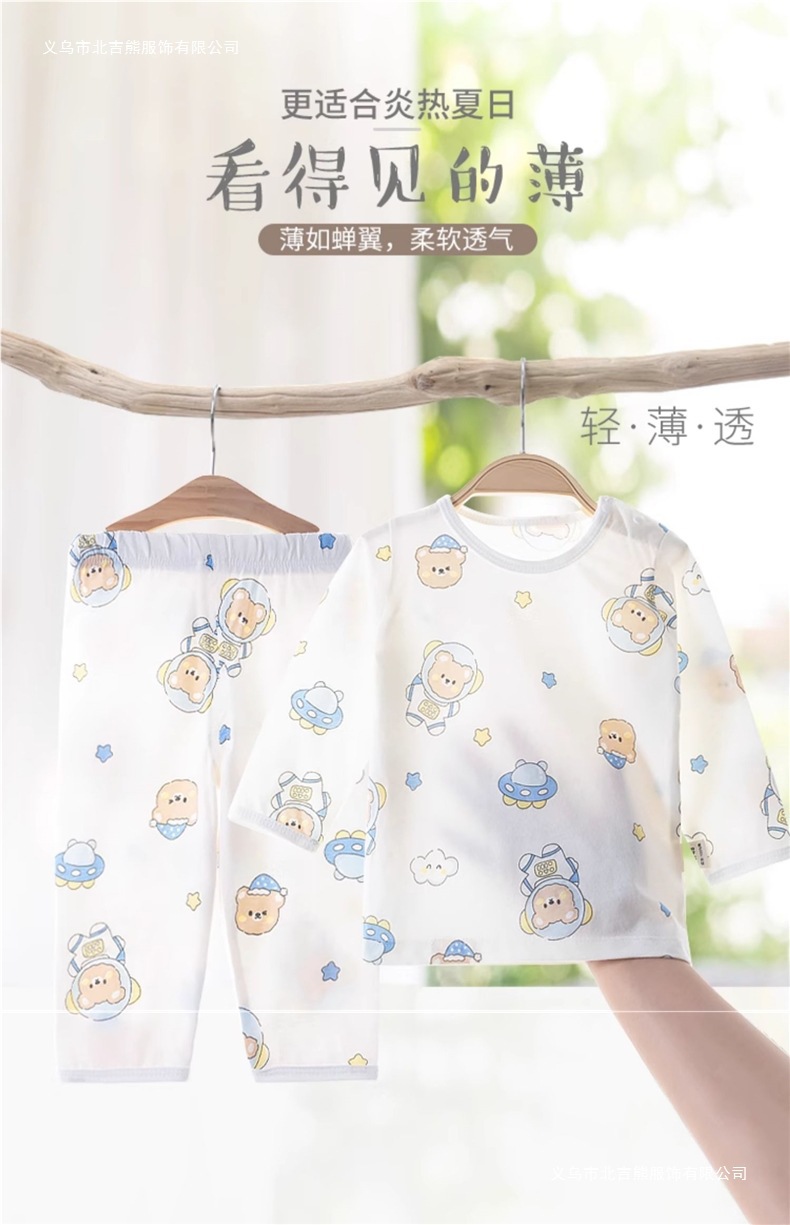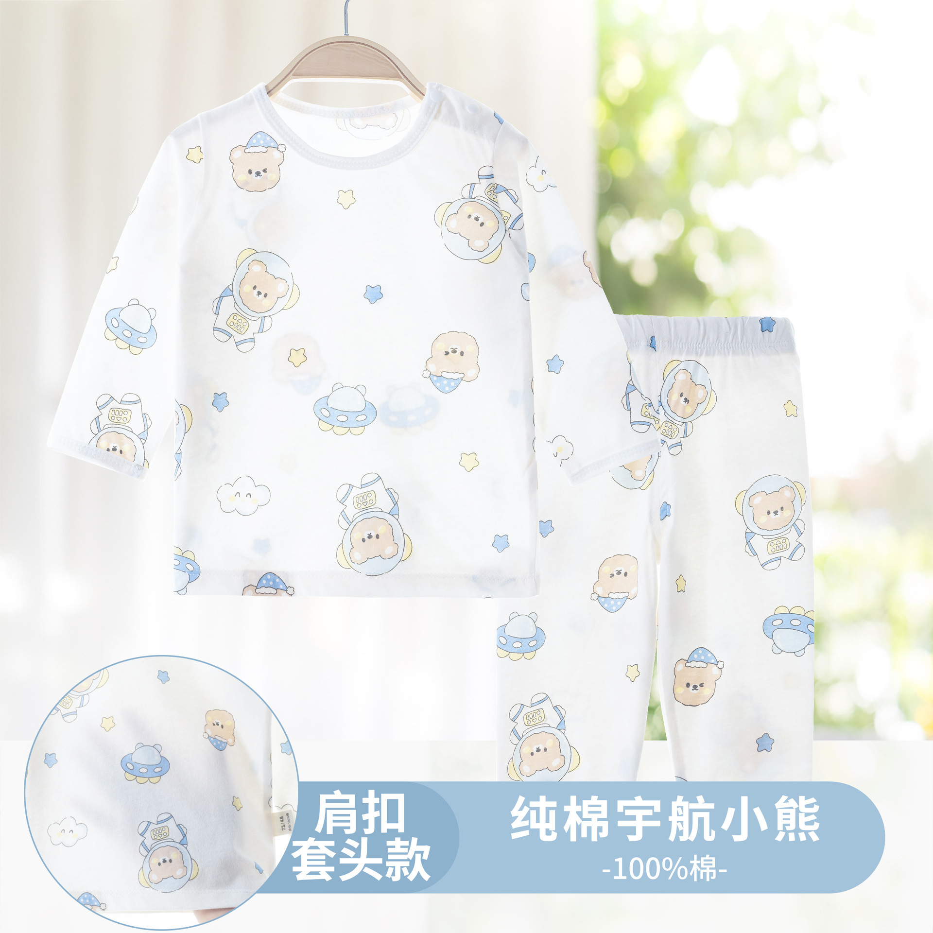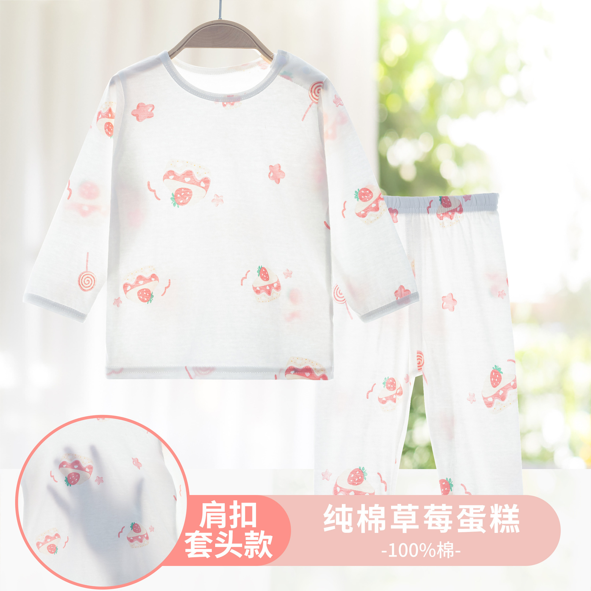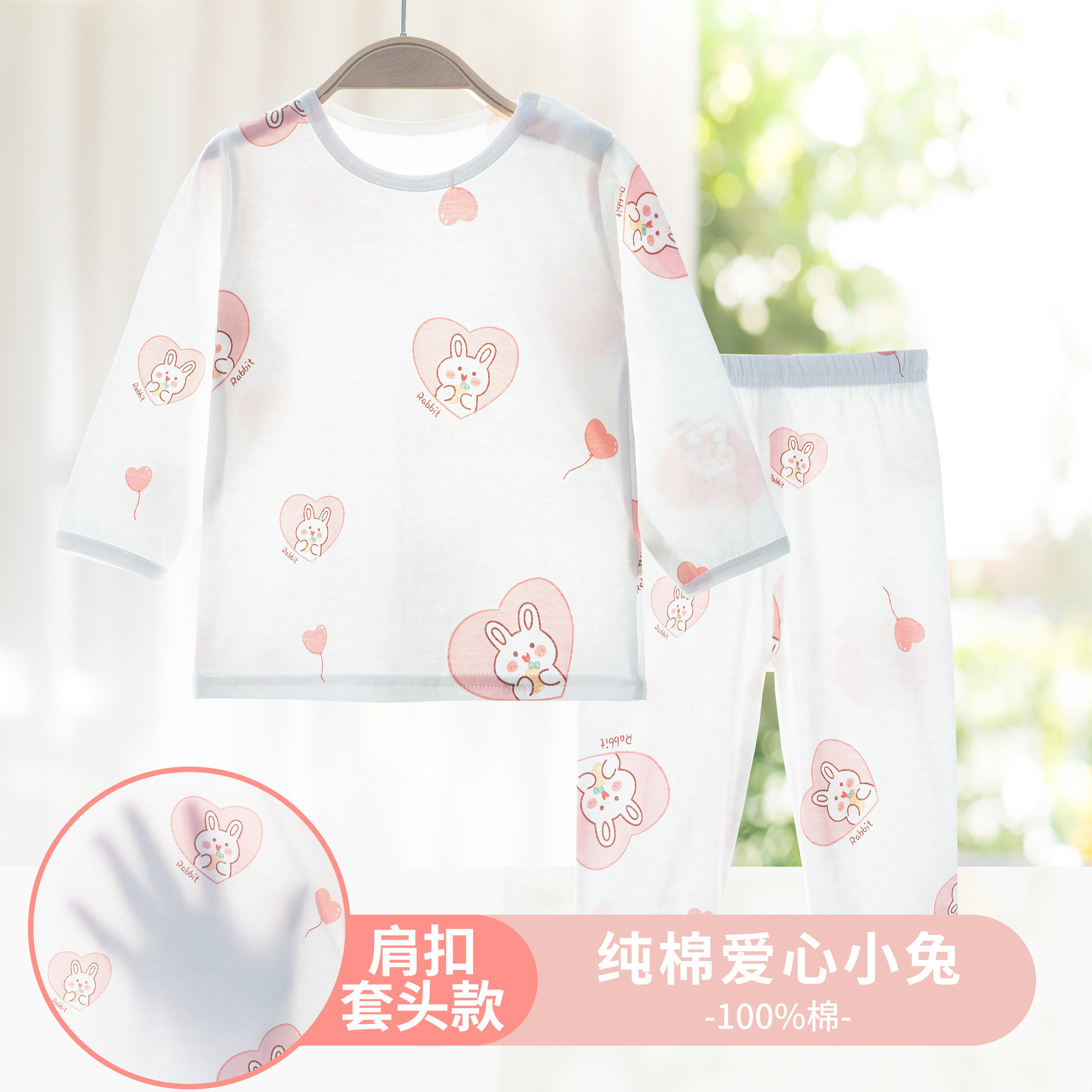 아동용 순면 긴팔 얇은 잠옷, 아기 여름 소년 봄 여름 가정복, 여아 에어컨 의류, 아기 옷스토어 가기
