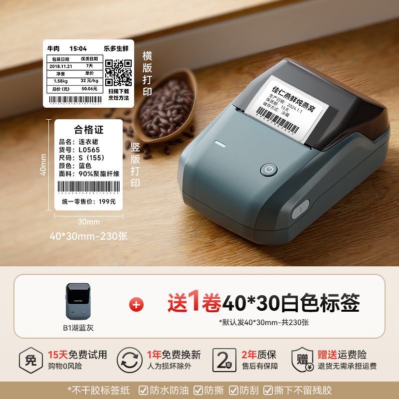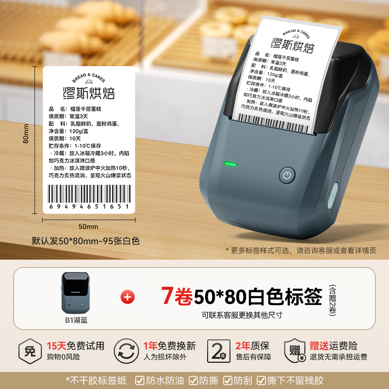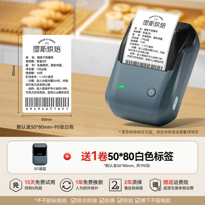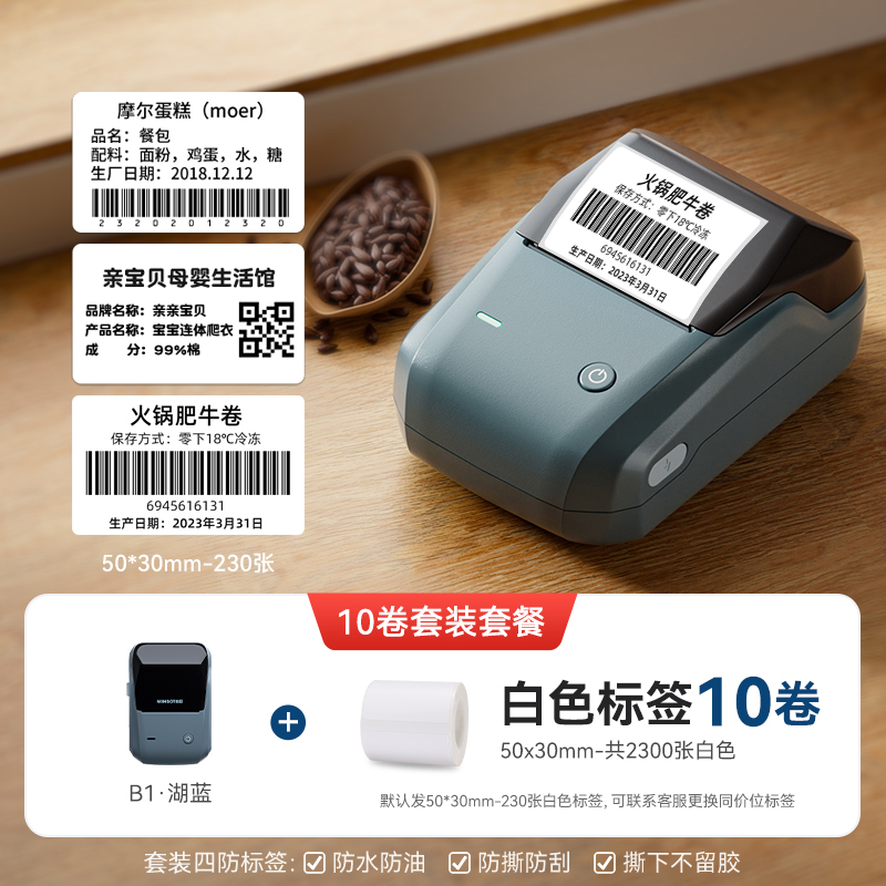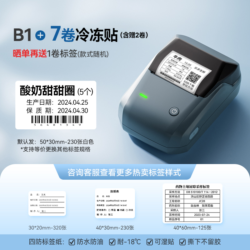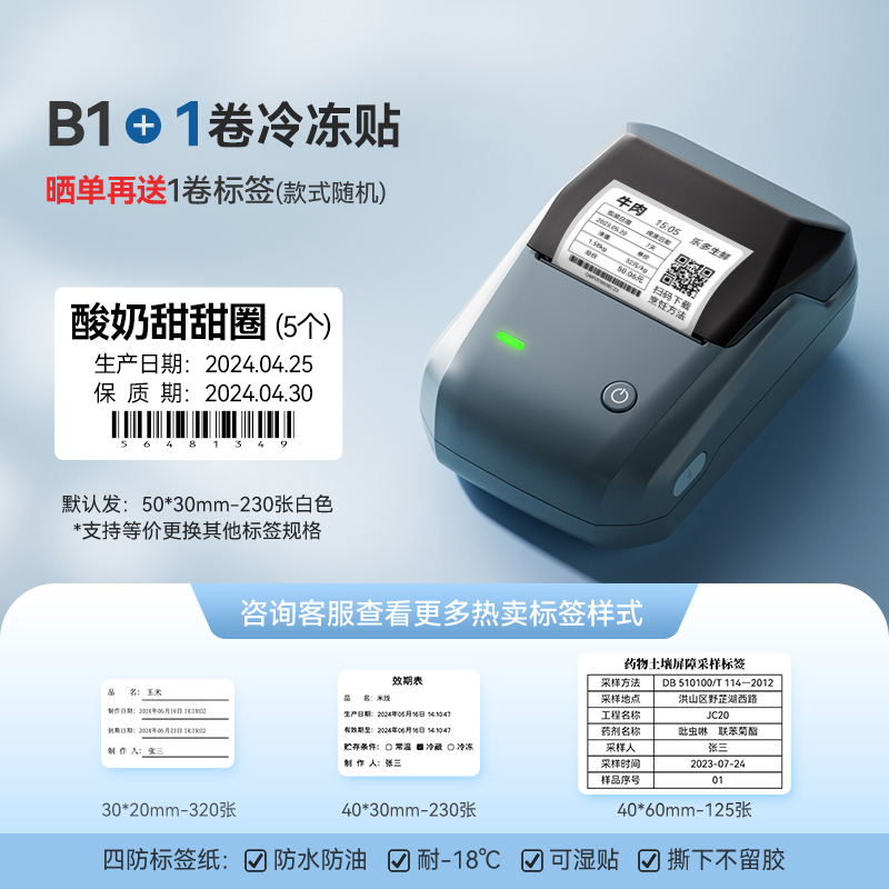 • B1 레이크 블루 + 무료 50*30-230 흰색 냉동 라벨 1롤 [내성-18℃저온】+ 주문 후 추가 롤 1개 - 표준 구성