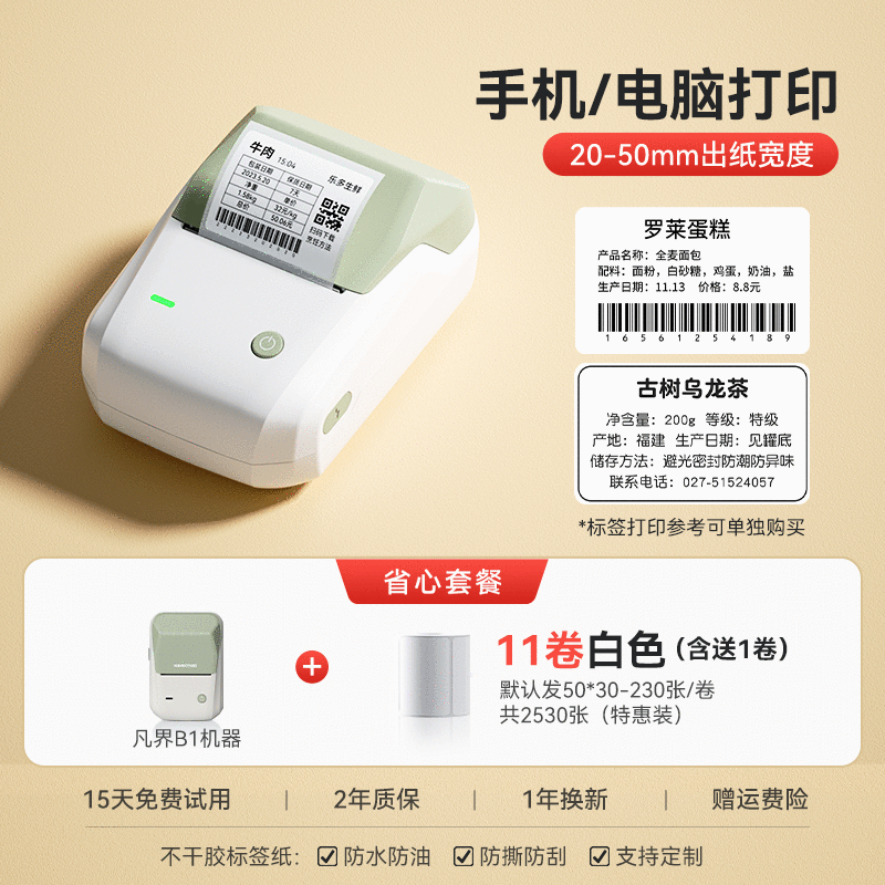 • B1 Ailu + 화이트 라벨 2롤 선택(1롤 무료 포함) + 주문 후 1롤 추가 - 표준 구성