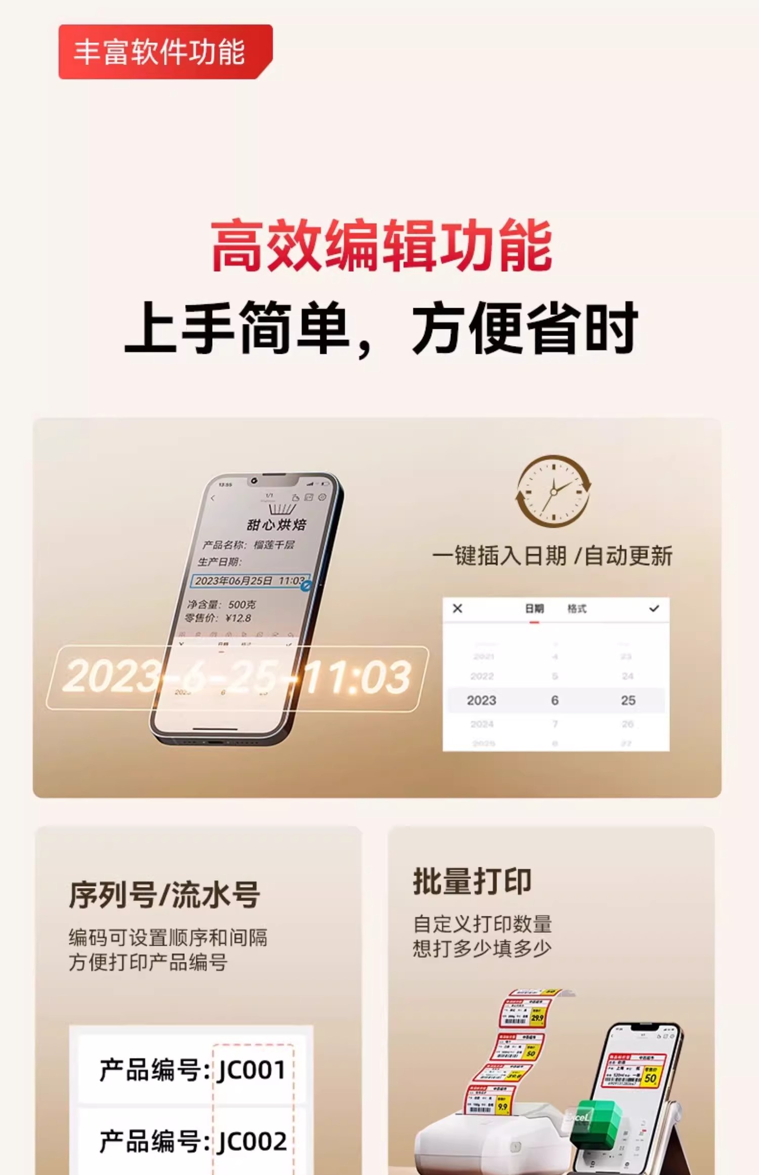Jingchen B1 식품 라벨 프린터 소형 Mooncake 차 베이킹 코딩 기계 의류 태그 빵 생산 날짜