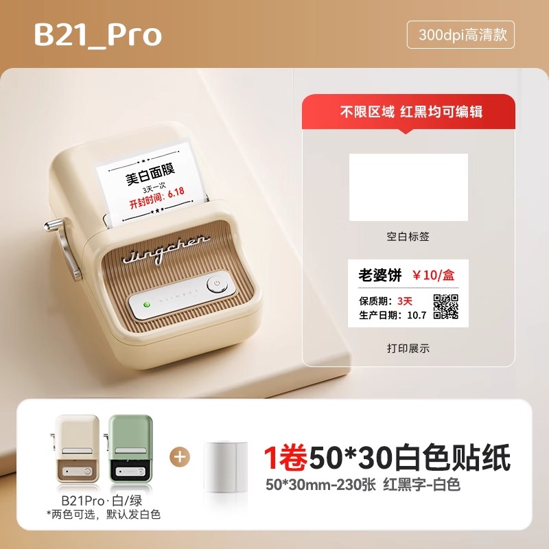 • [빨간색과 검정색] B21_Pro 기계 + 50*30 롤 1개 [스티커] 흰색 라벨 + 주문 시 롤 1개 추가 - 표준 구성