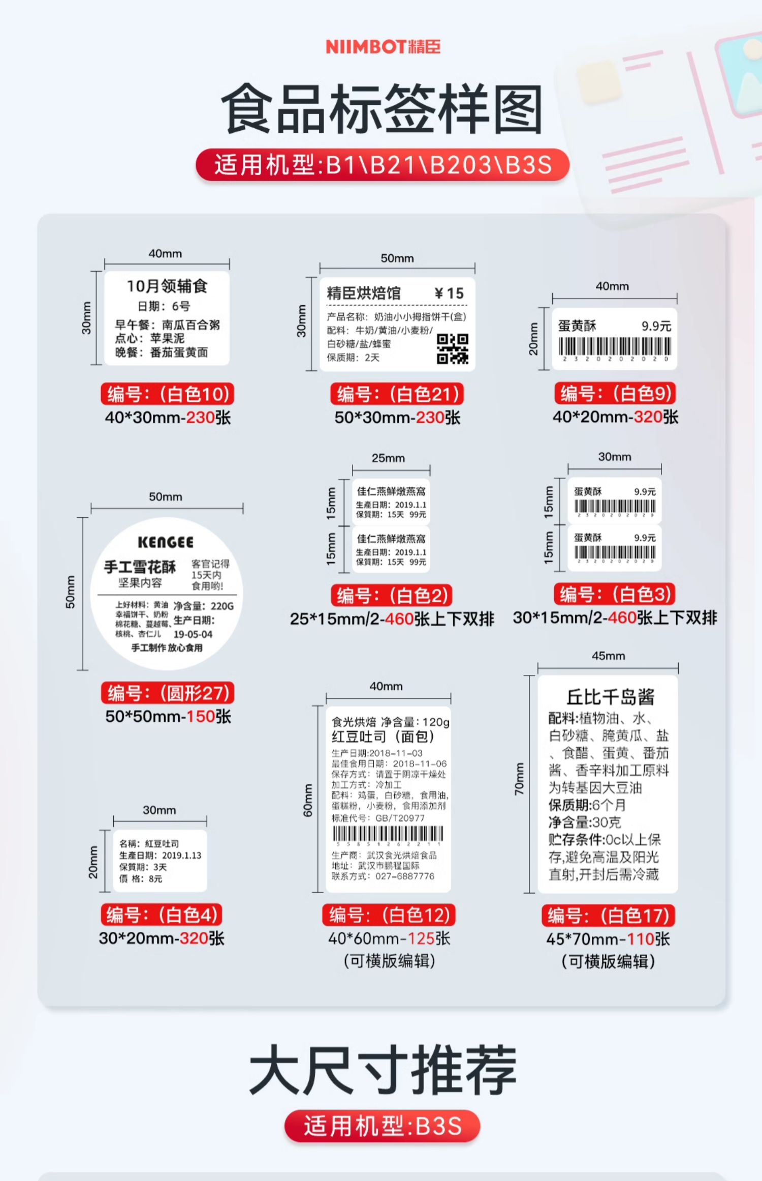 • B1+2롤 50*30 냉동, 총 460매 [-18에 대한 저항성]℃저온] (1롤 무료 증정 포함) + 주문 후 1롤 추가 증정 - 표준 구성