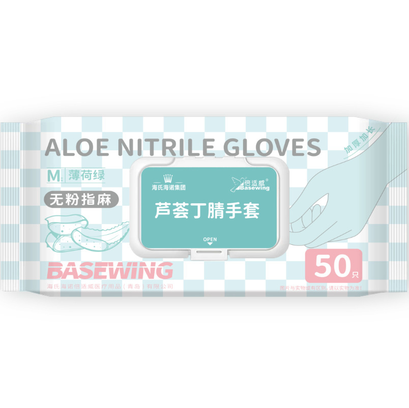 • Beswe 알로에 베라 니트릴 장갑(파우더 프리 핑거 마비 M 민트 그린) 50개 - 1팩