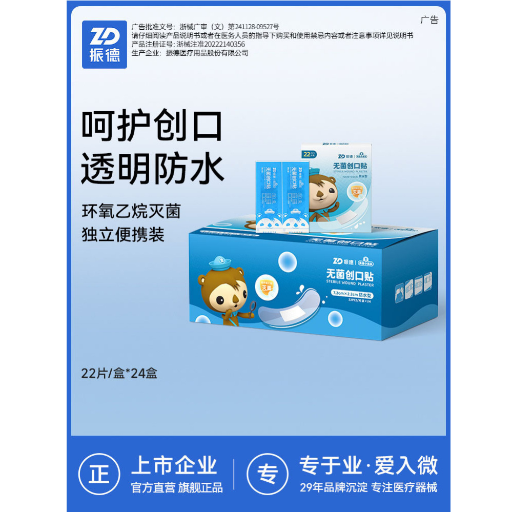 • Zhende 멸균 반창고(방수형) 7.2cm*2.2cm*22개/상자--1상자